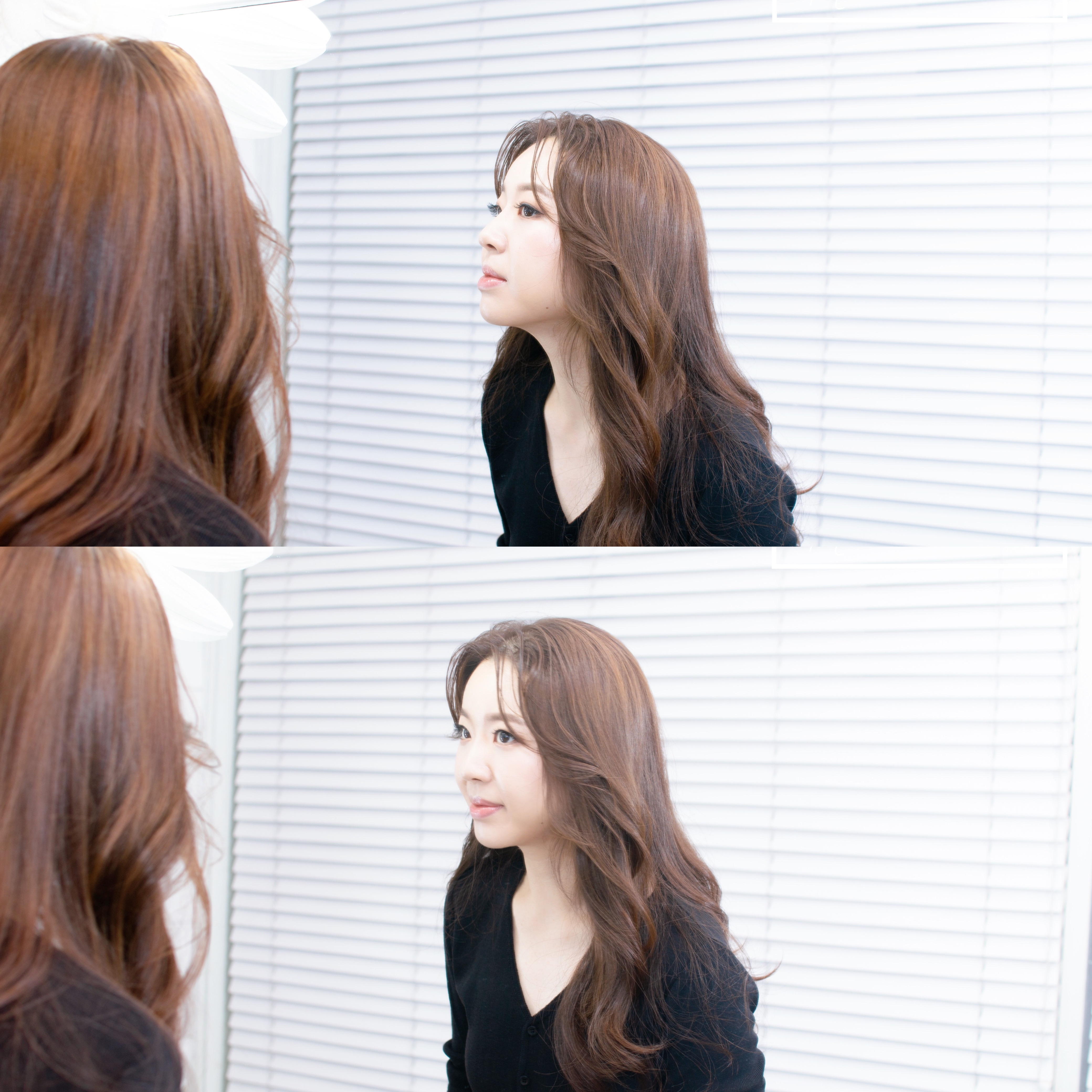 헤어스타일은 자연스러운 여성미를 더한 웨이브,
