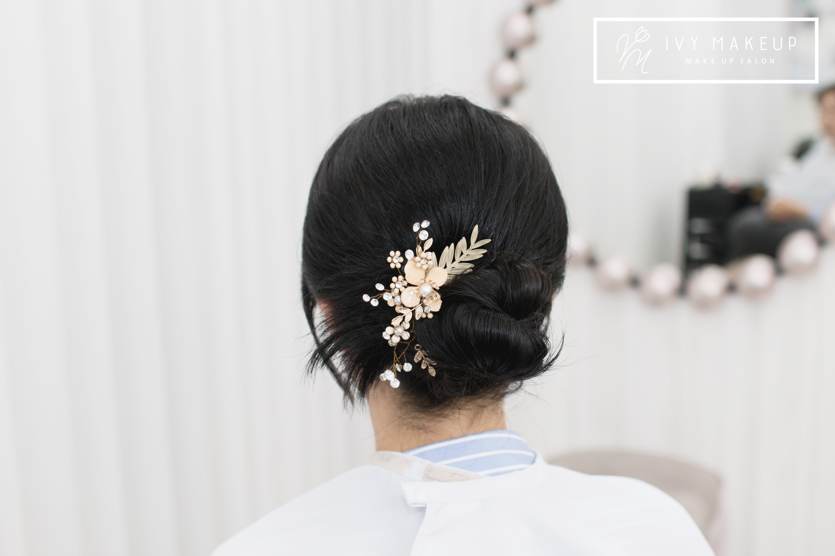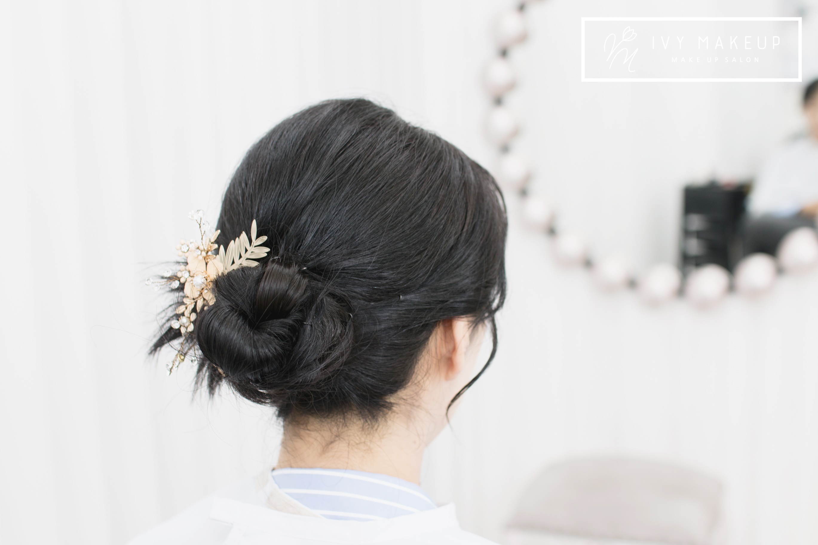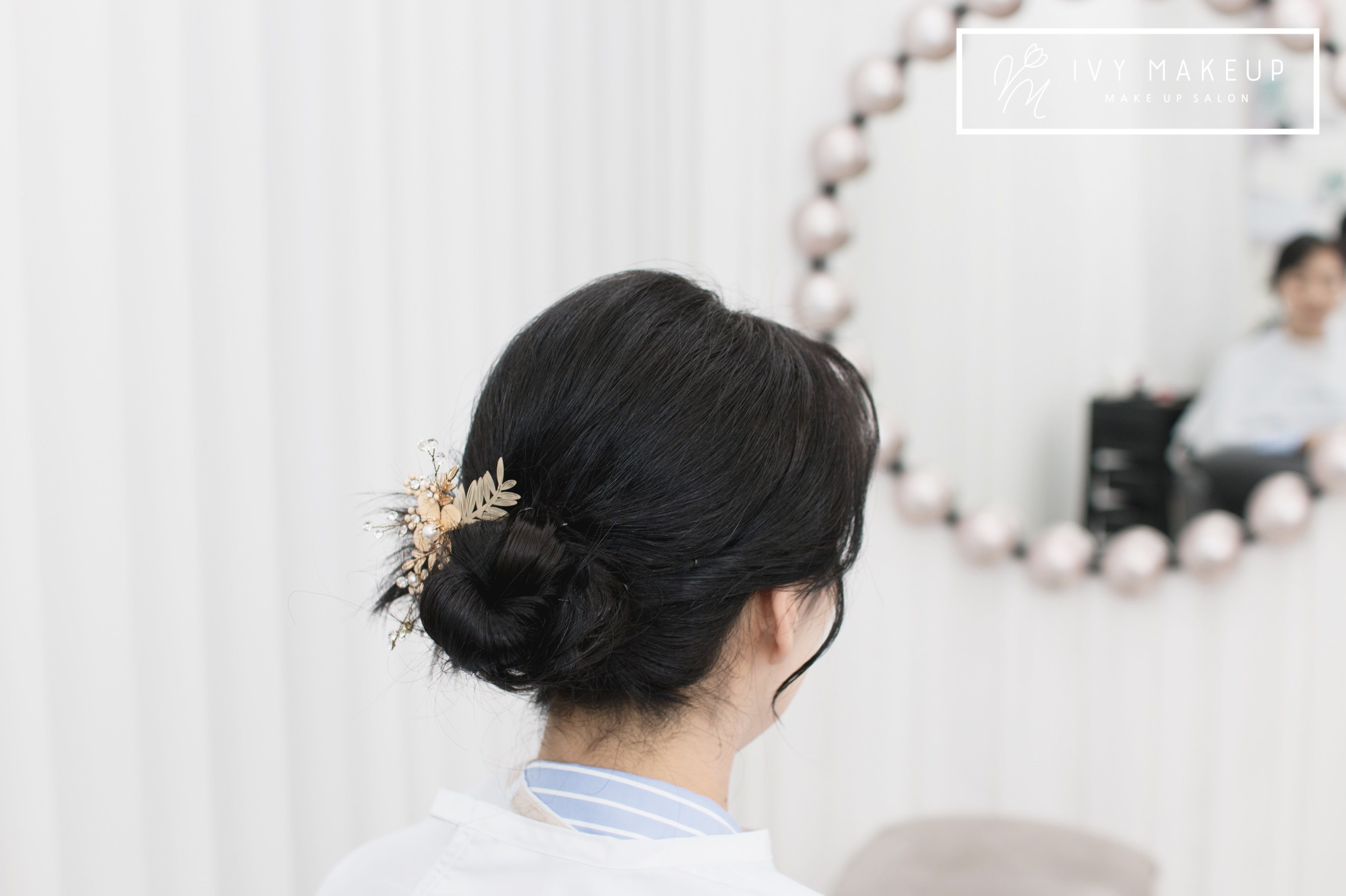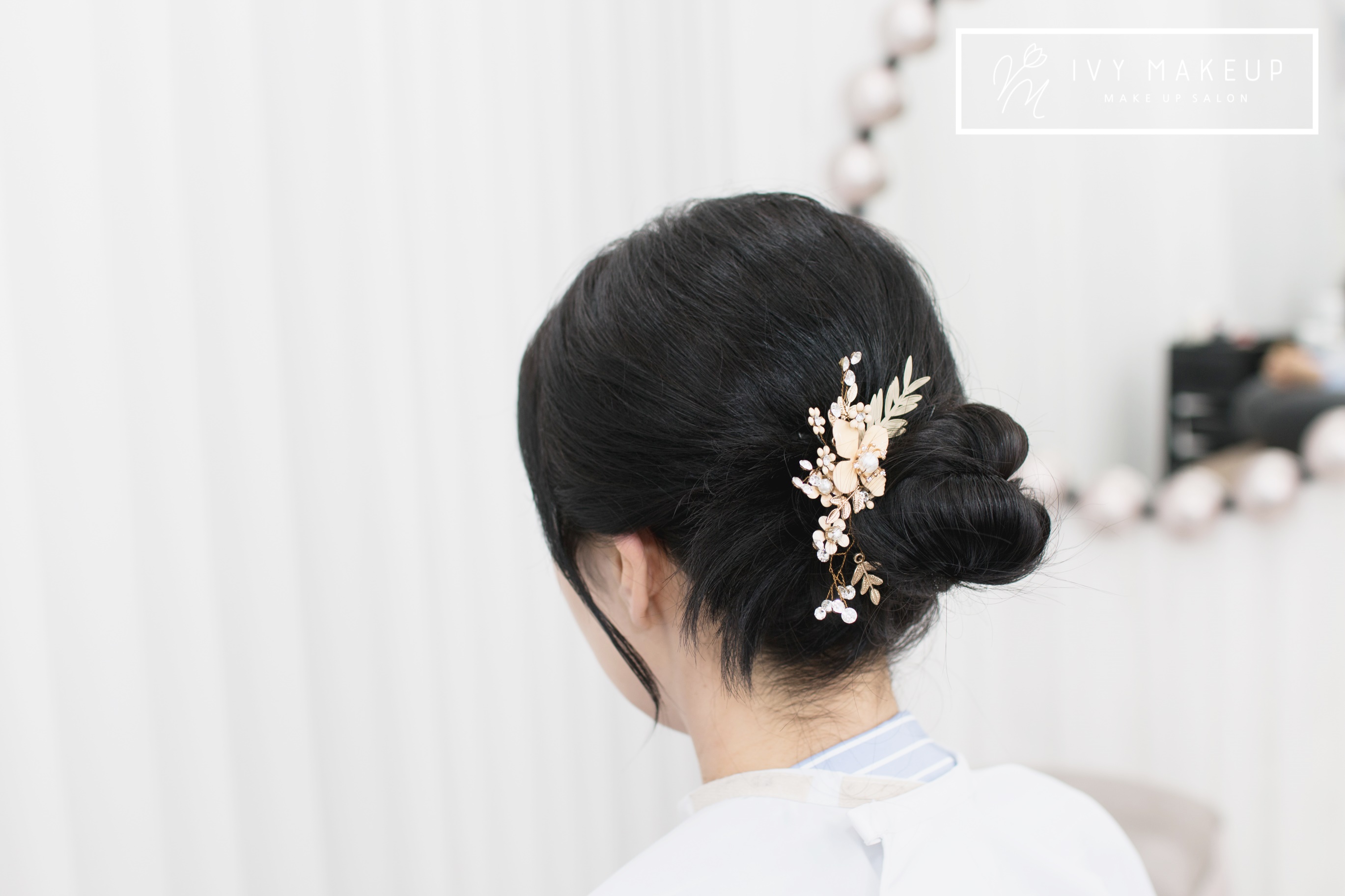 땋기 머리를 번 모양으로 아이비 메이크업이 틀어드렸어요