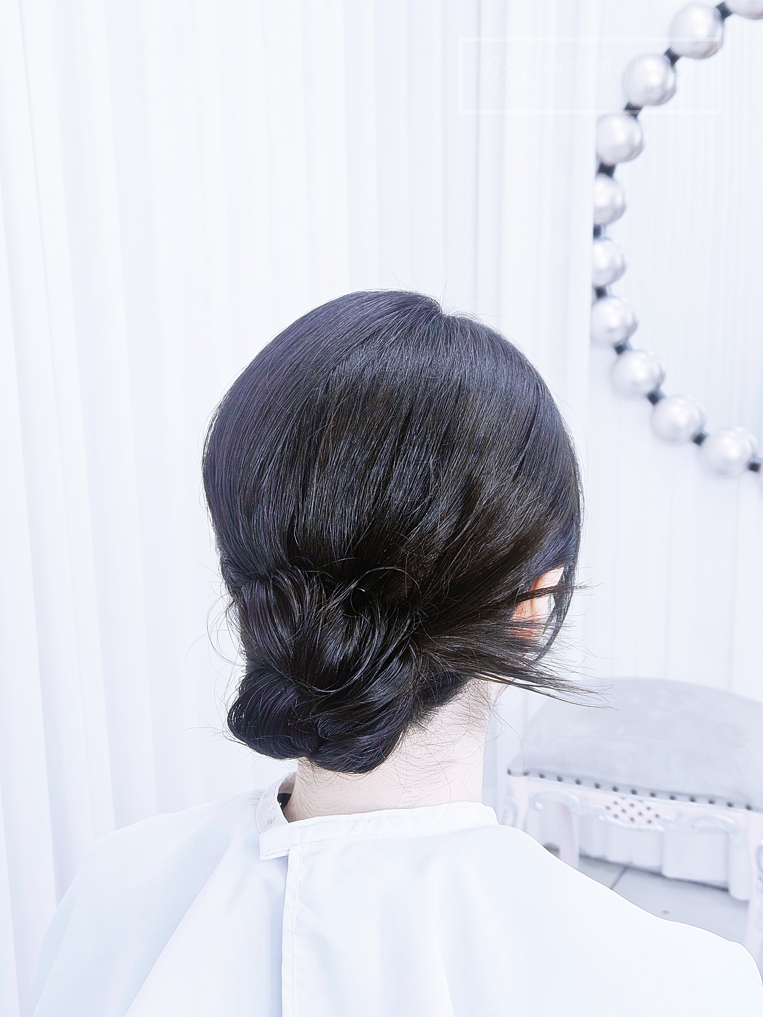이번 스타일은 볼륨을 살린 단정한 업스타일,