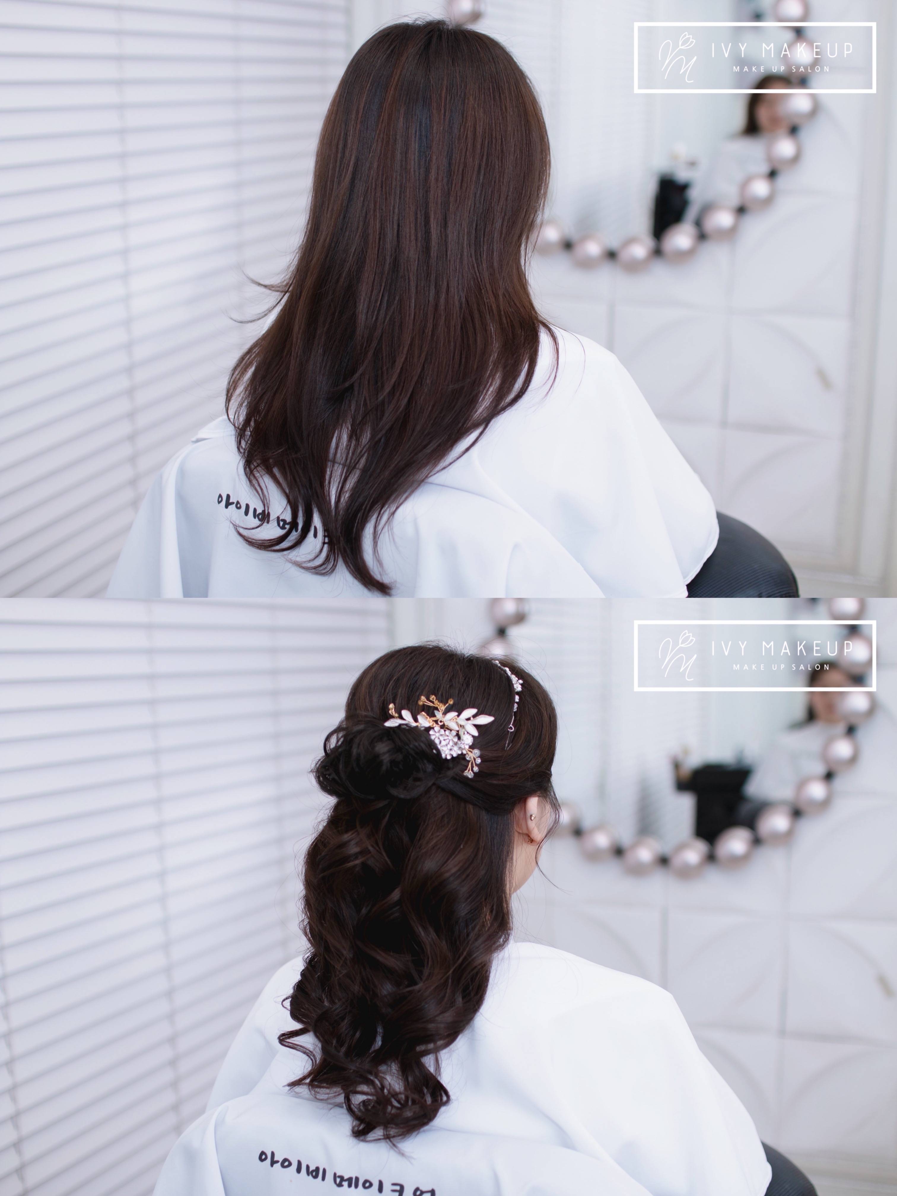 창원 웨딩 헤어스타일을 아이비 메이크업이 트렌드 하게 연출해 드려요.