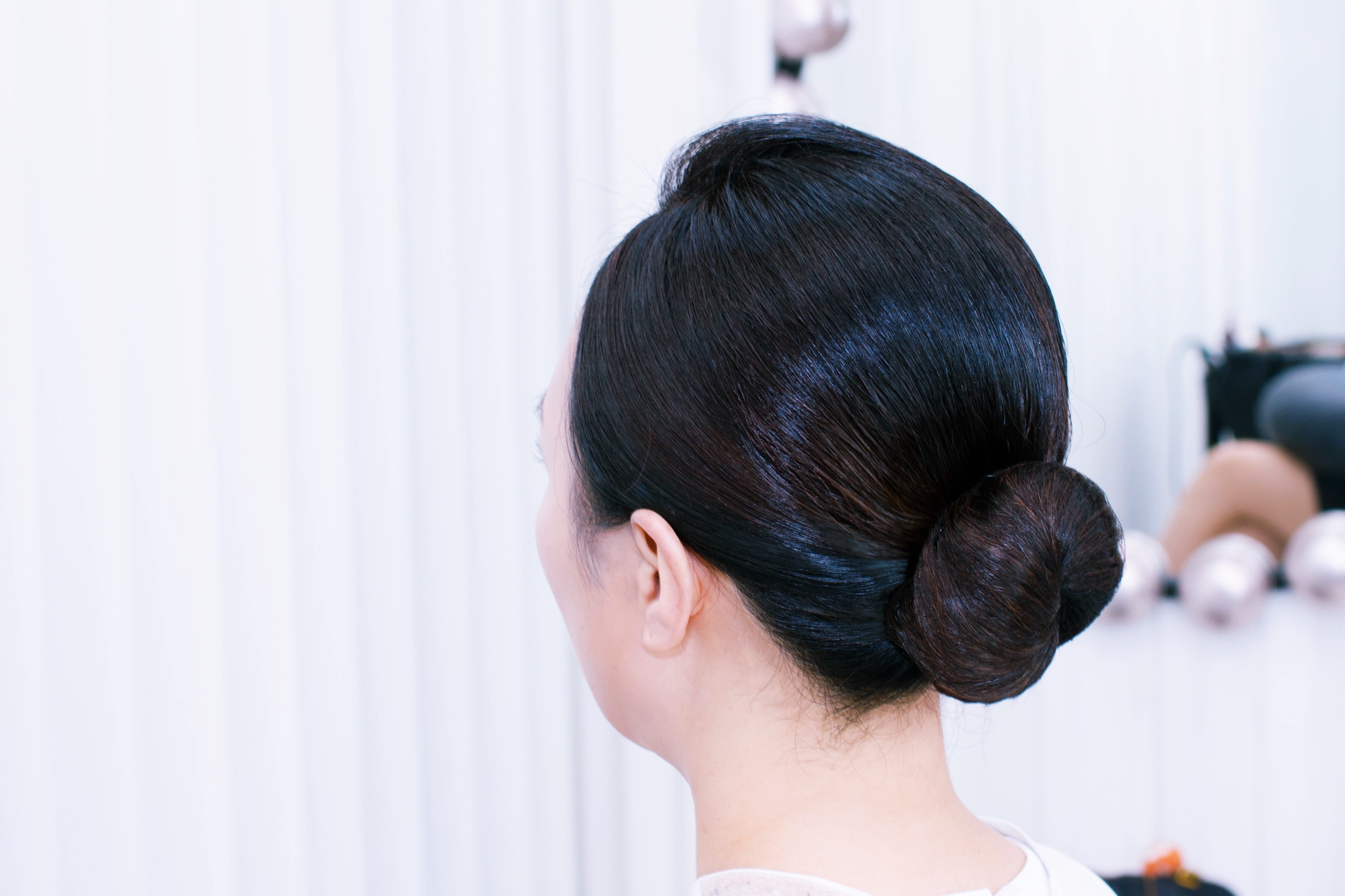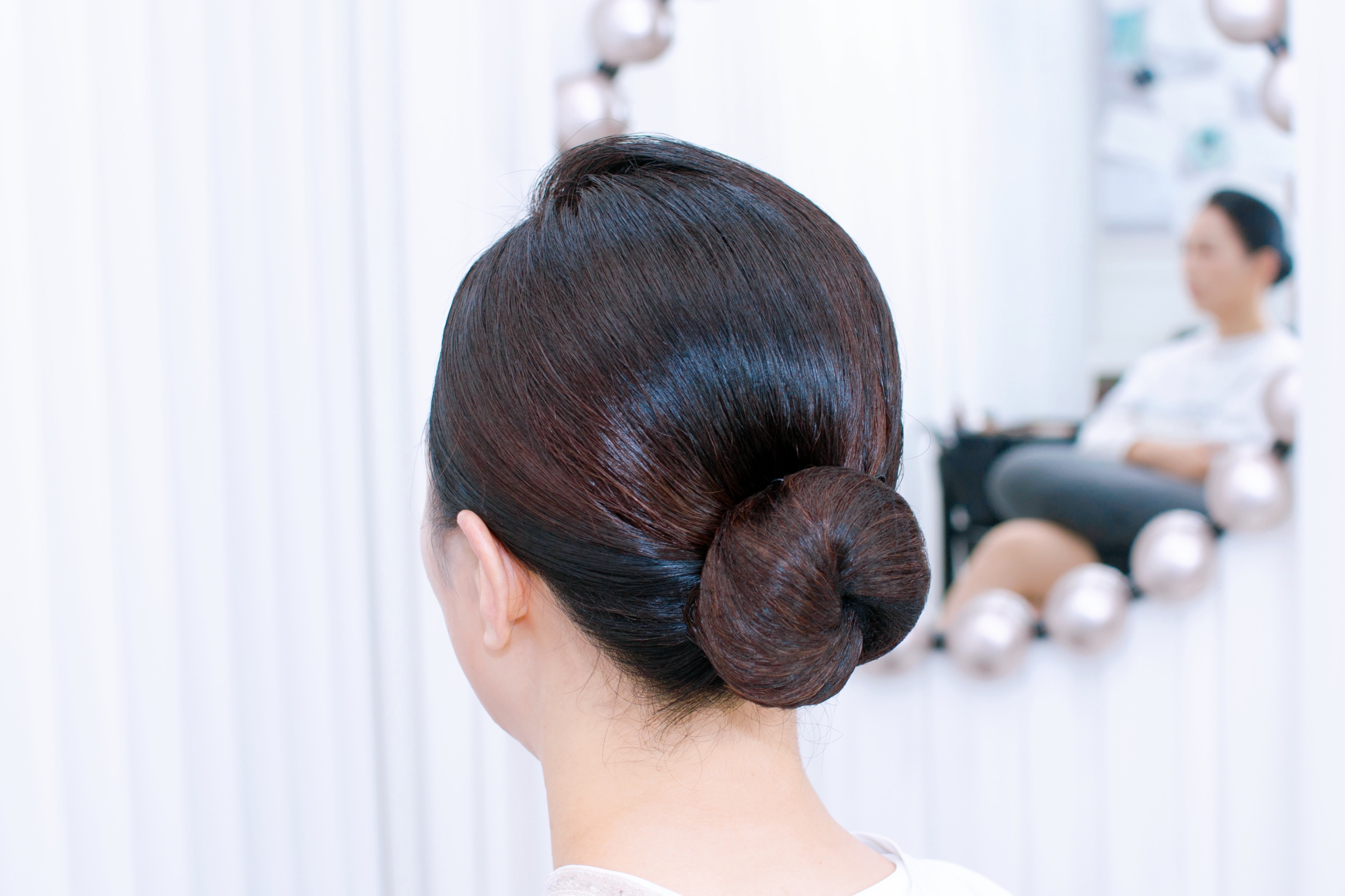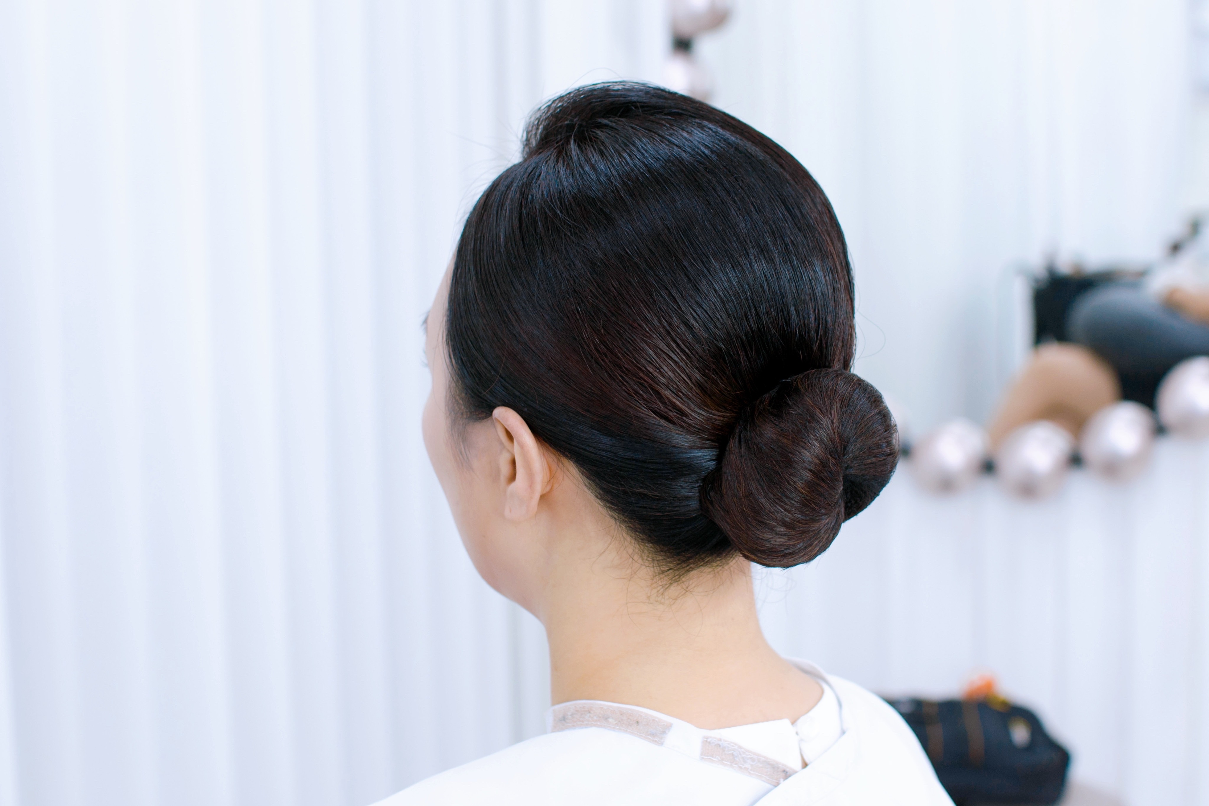 둥근 얼굴형은 타이트한 올림머리를 하면