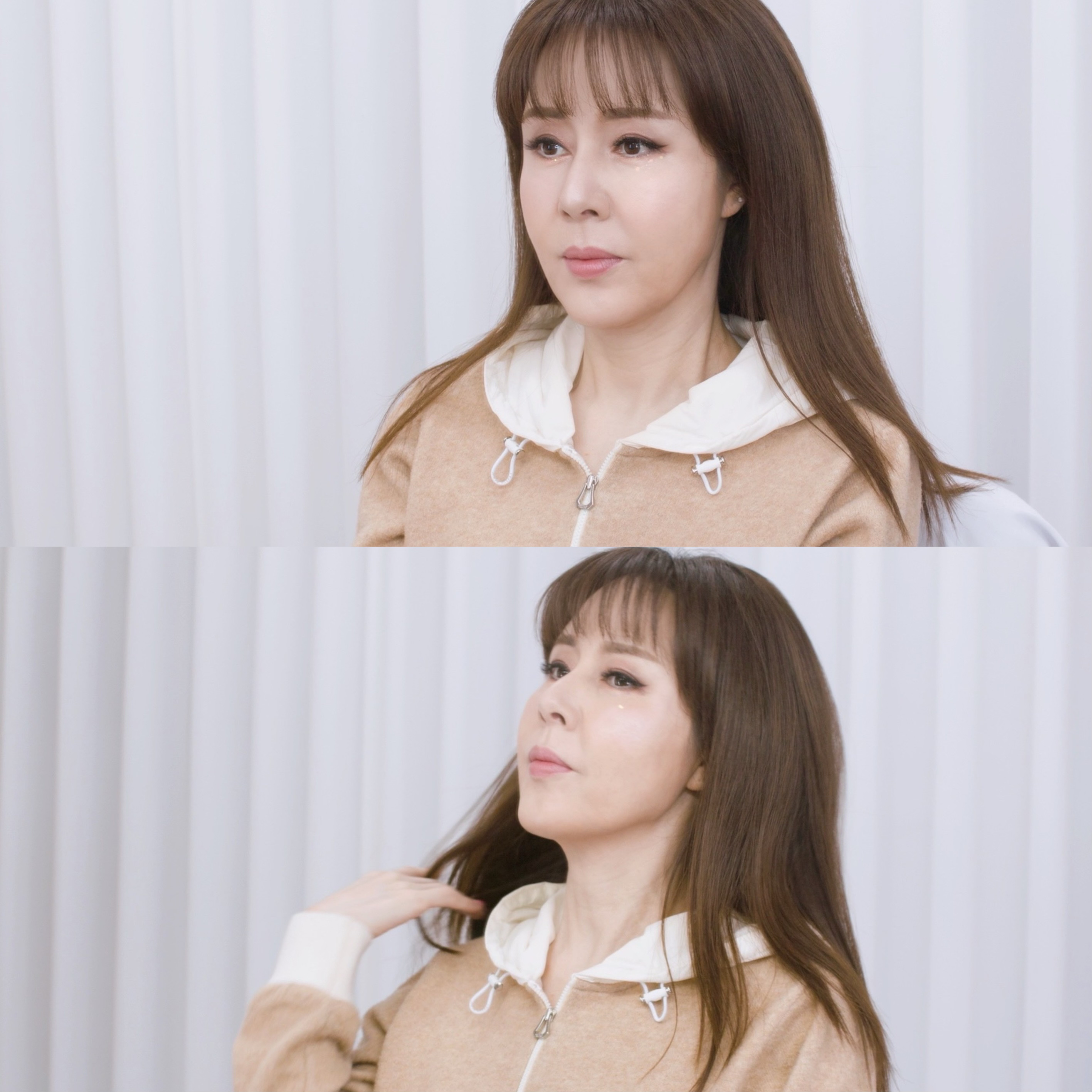 단발은 귀 뒤로 넘기거나, 긴 머리는 단정하게 묶는 방식이 좋겠죠