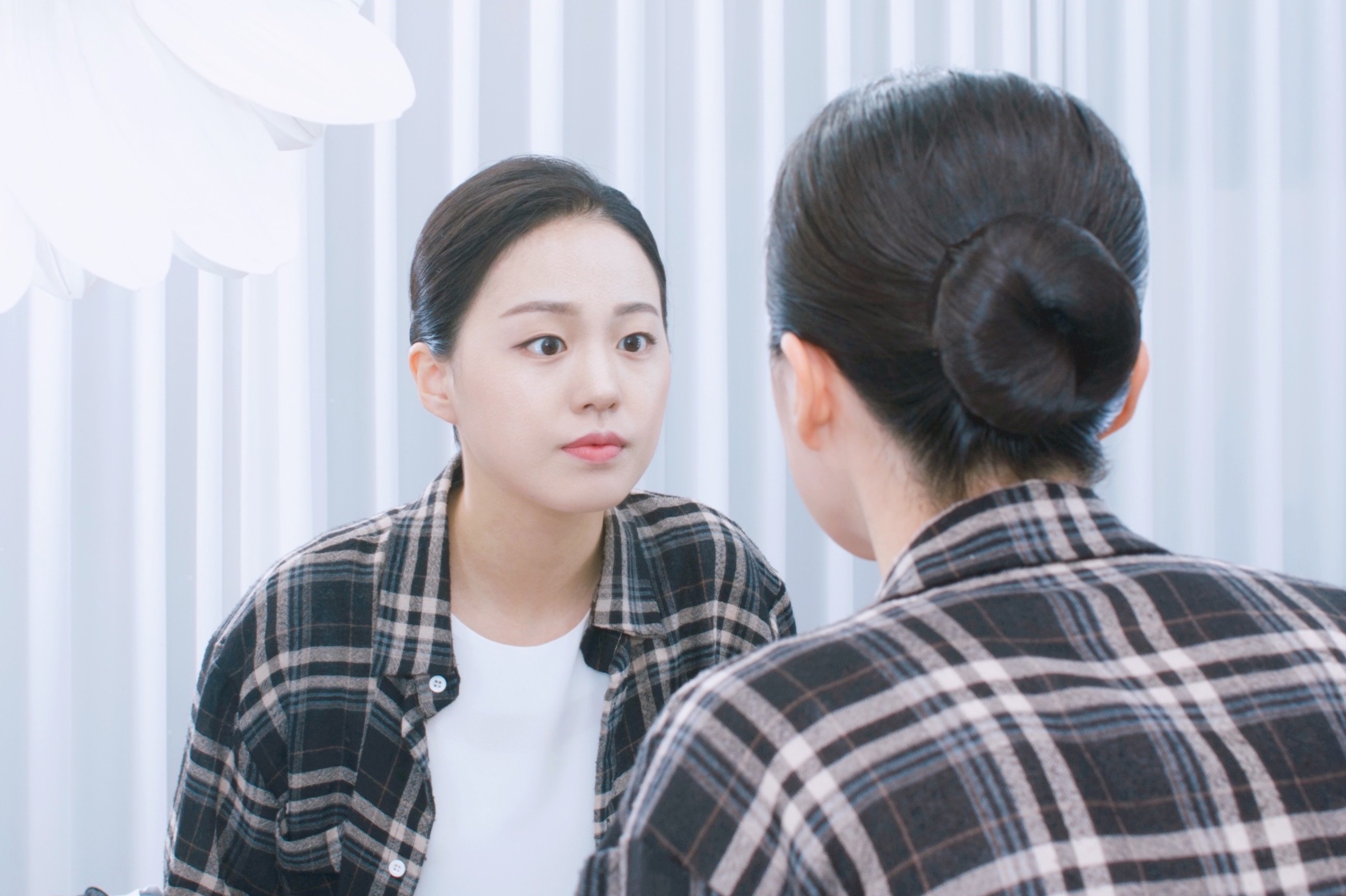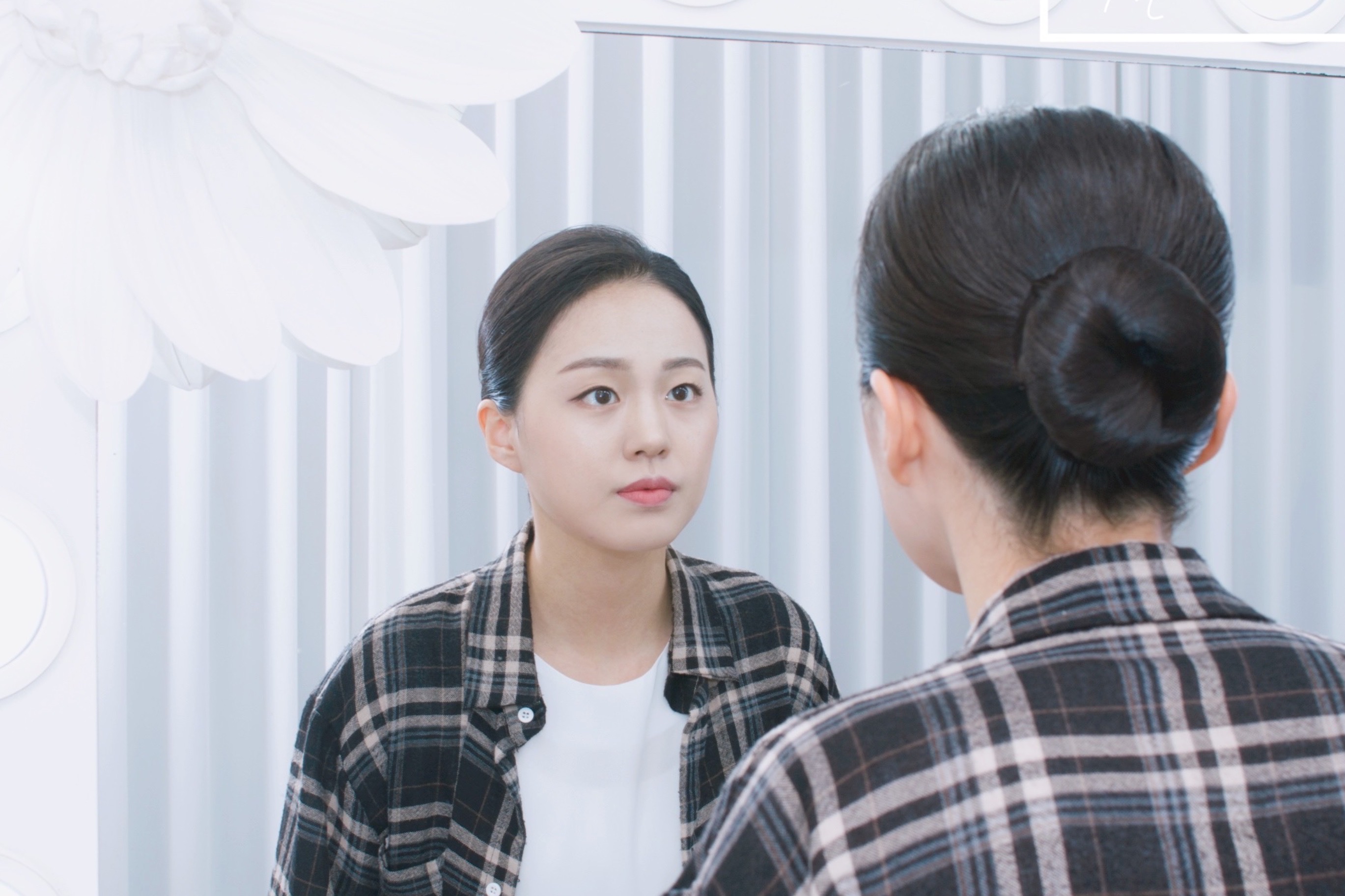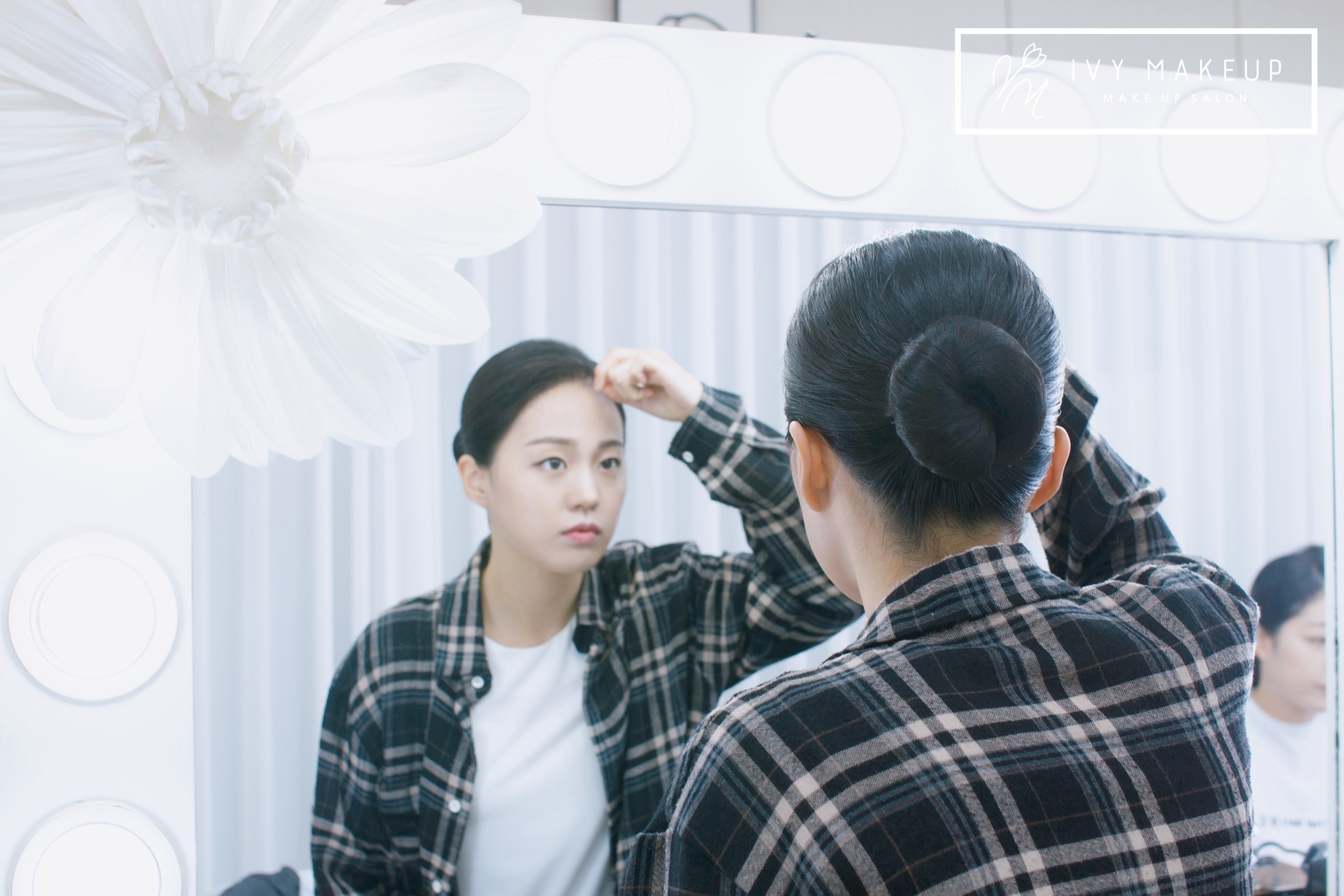 단정해 보이기 위해서는 깔끔하게 쪽 머리로 묶는 것이 제일 좋지만,