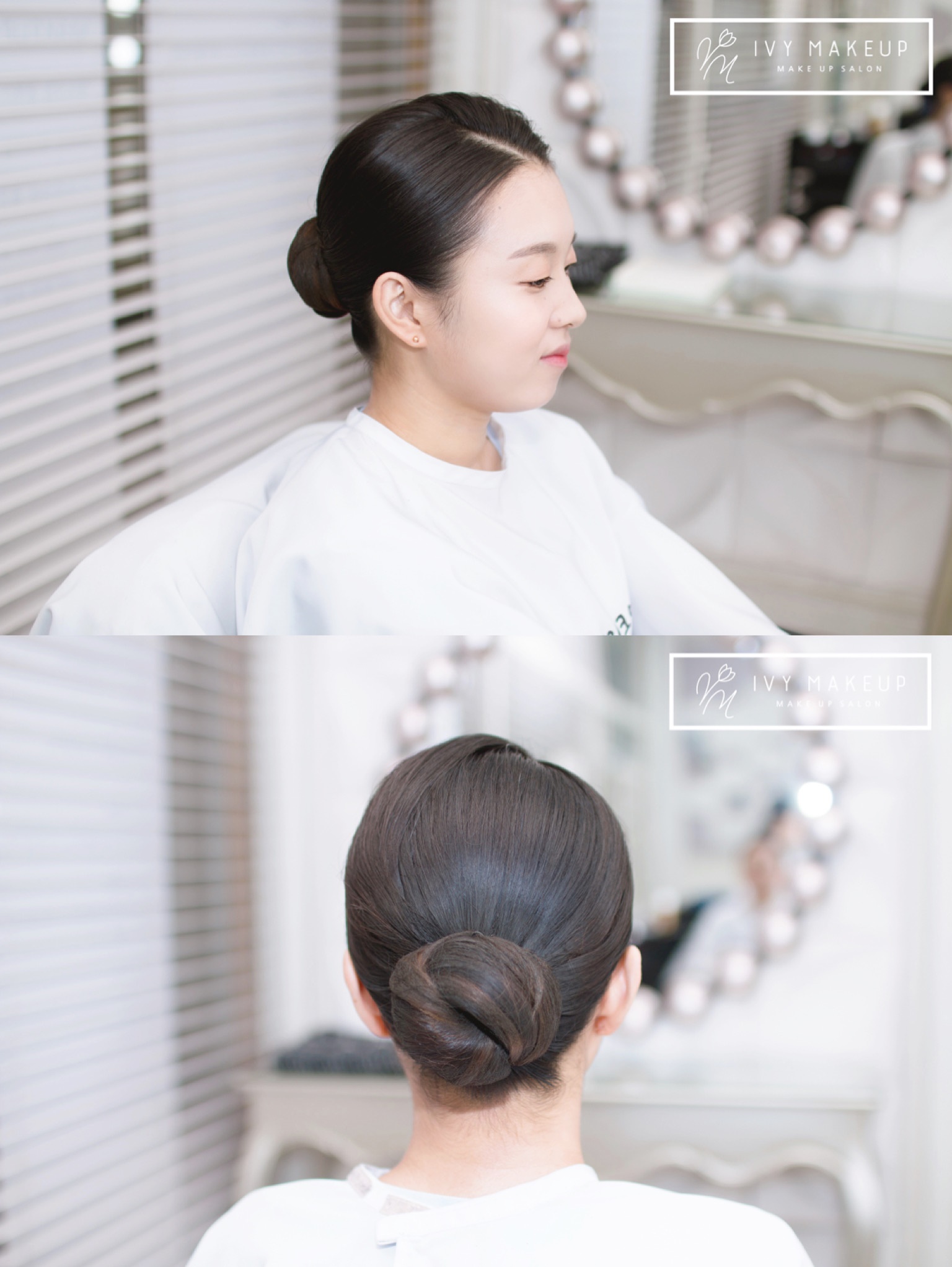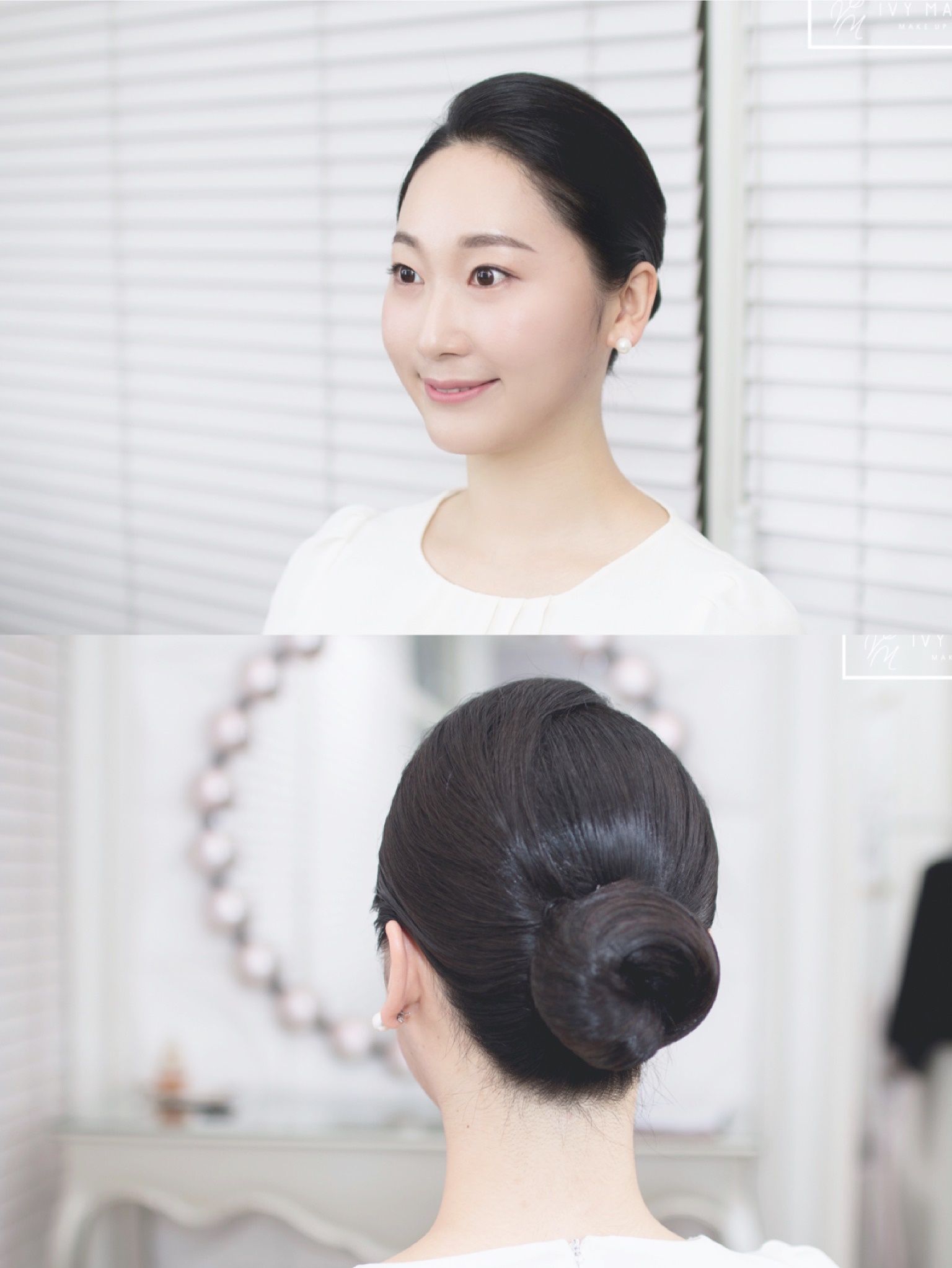 단정한 쪽머리가 인상을 잘 살릴 수 있게