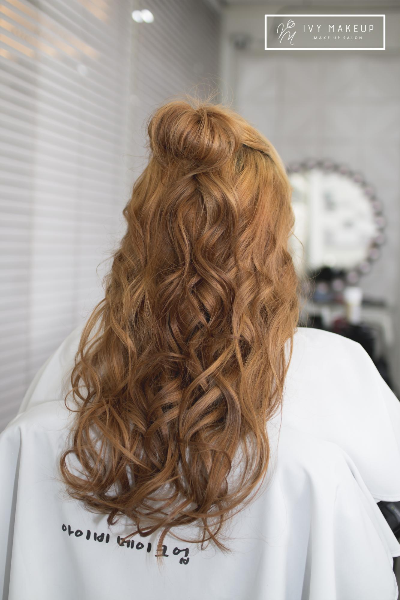 전체적인 웨이브가 들어간 반머리 연출과