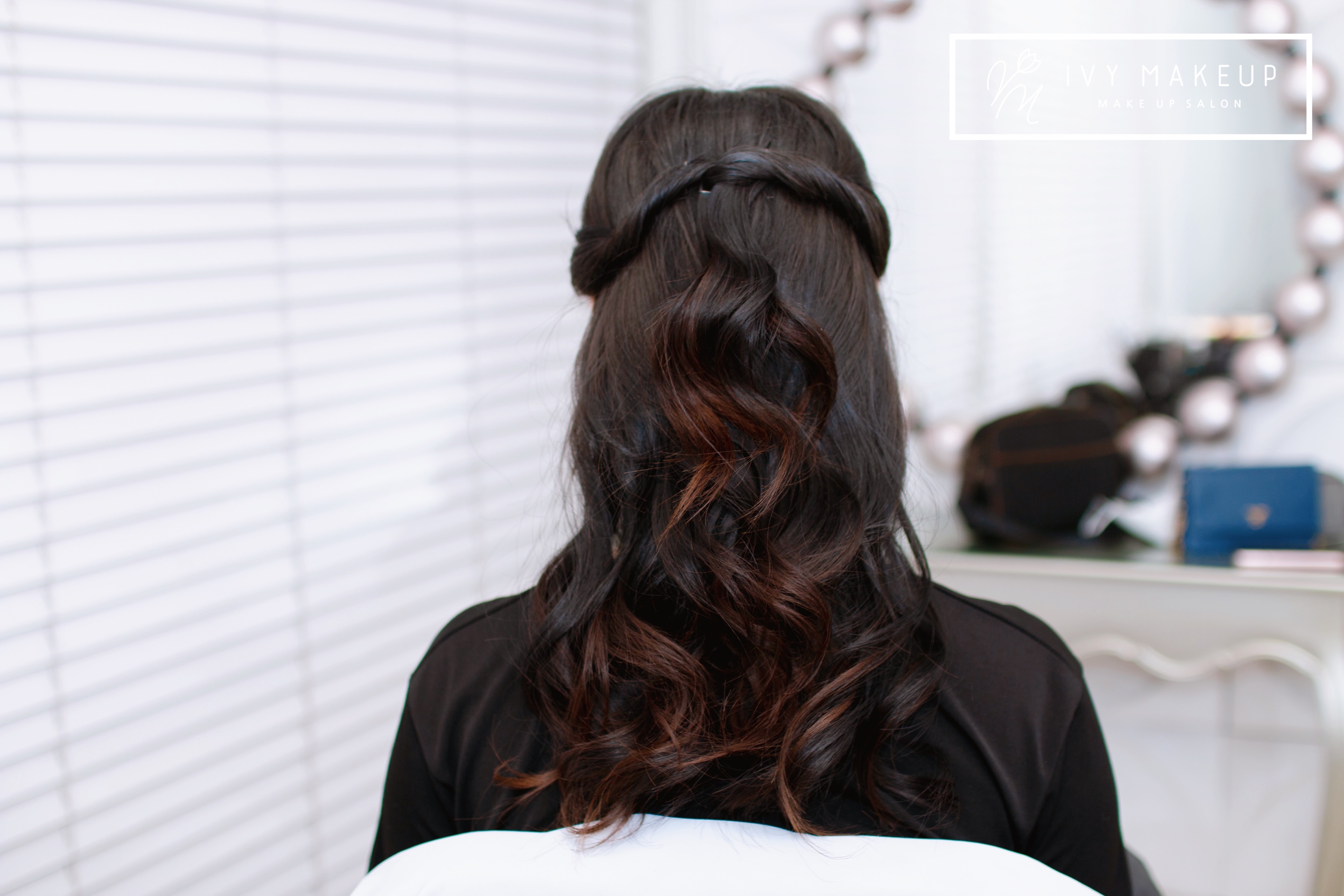 반머리 연출로 아이비 메이크업이