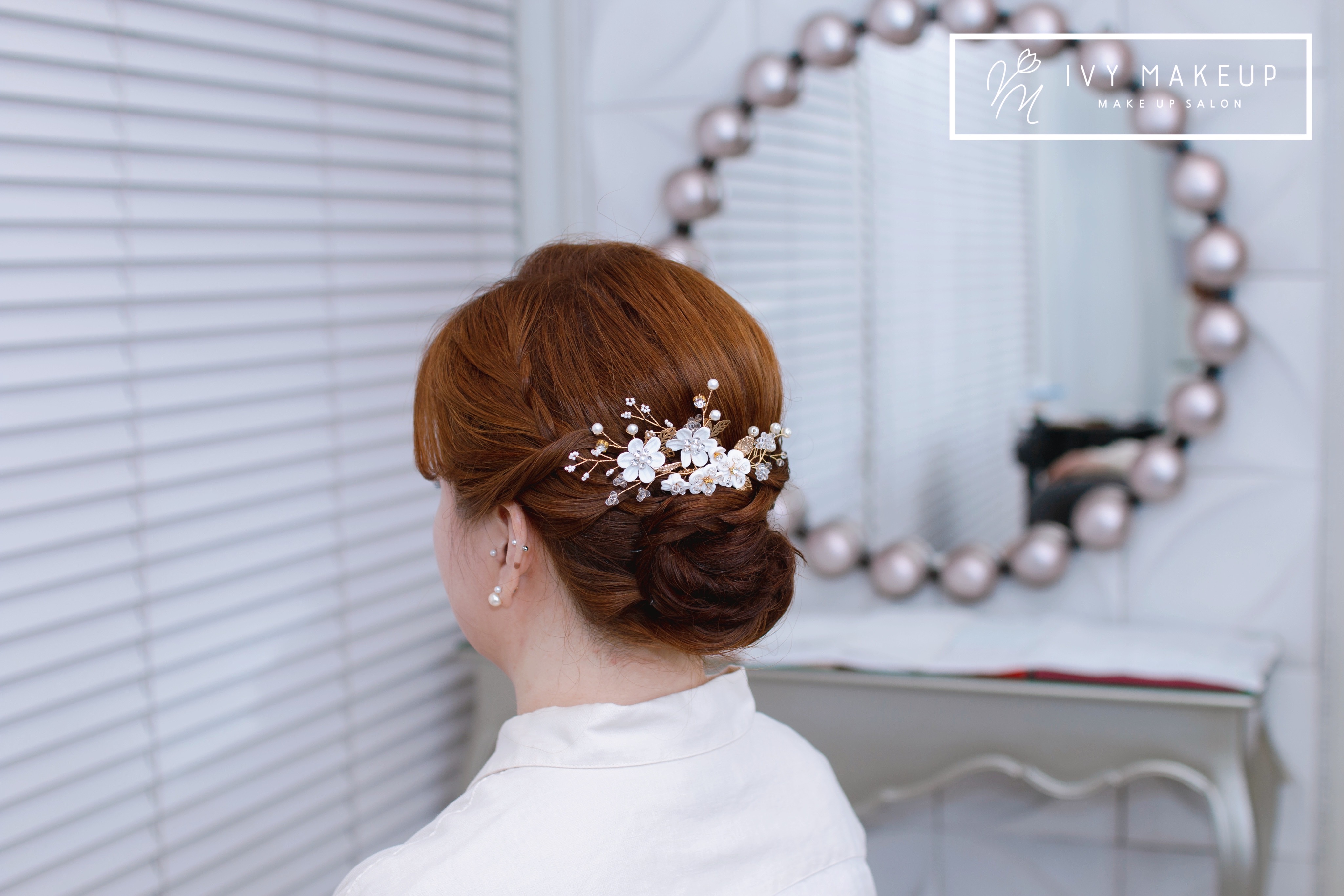 헤어 장식으로 고급스러움을 한층 더 아이비 메이크업이 높여드립니다.