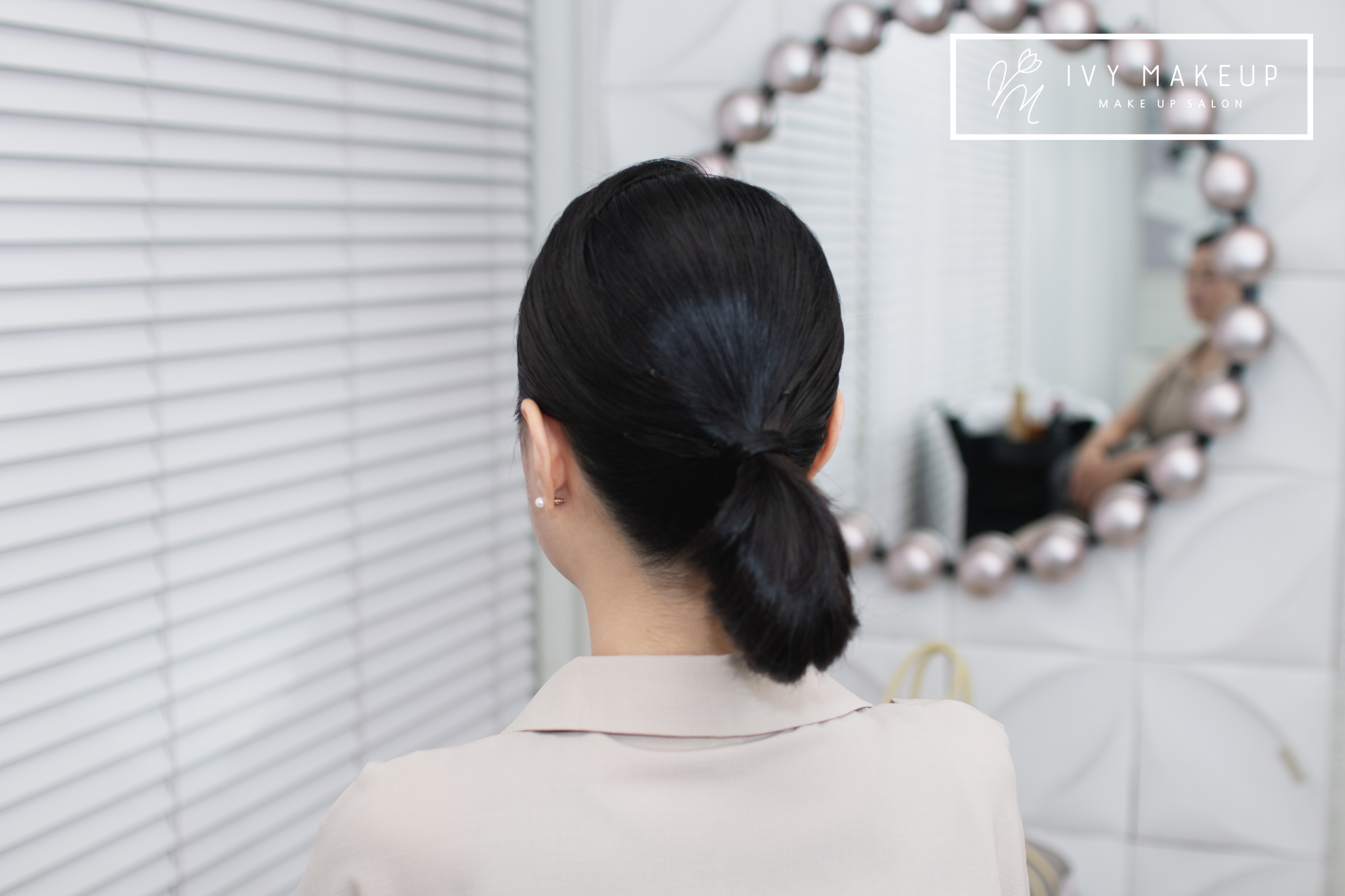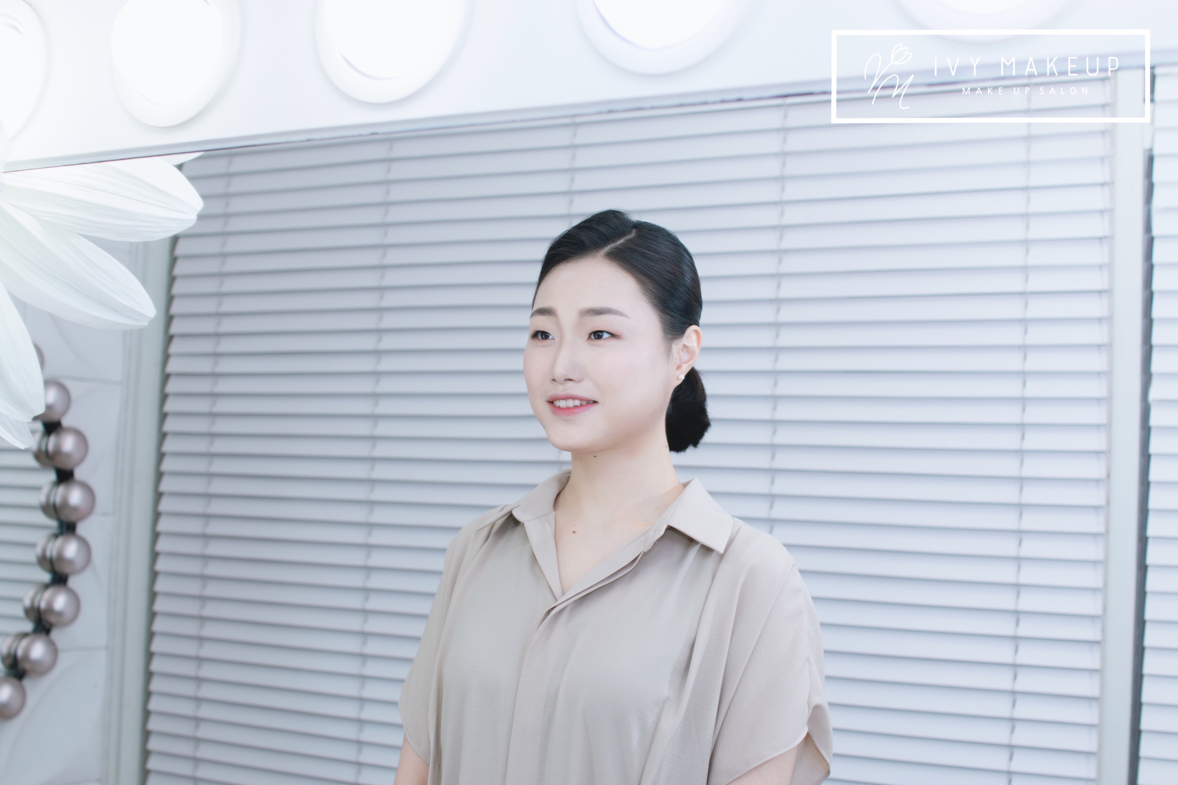 단정한 앞모습에 자연스러움을 더한 포니테일 아이비 메이크업이
