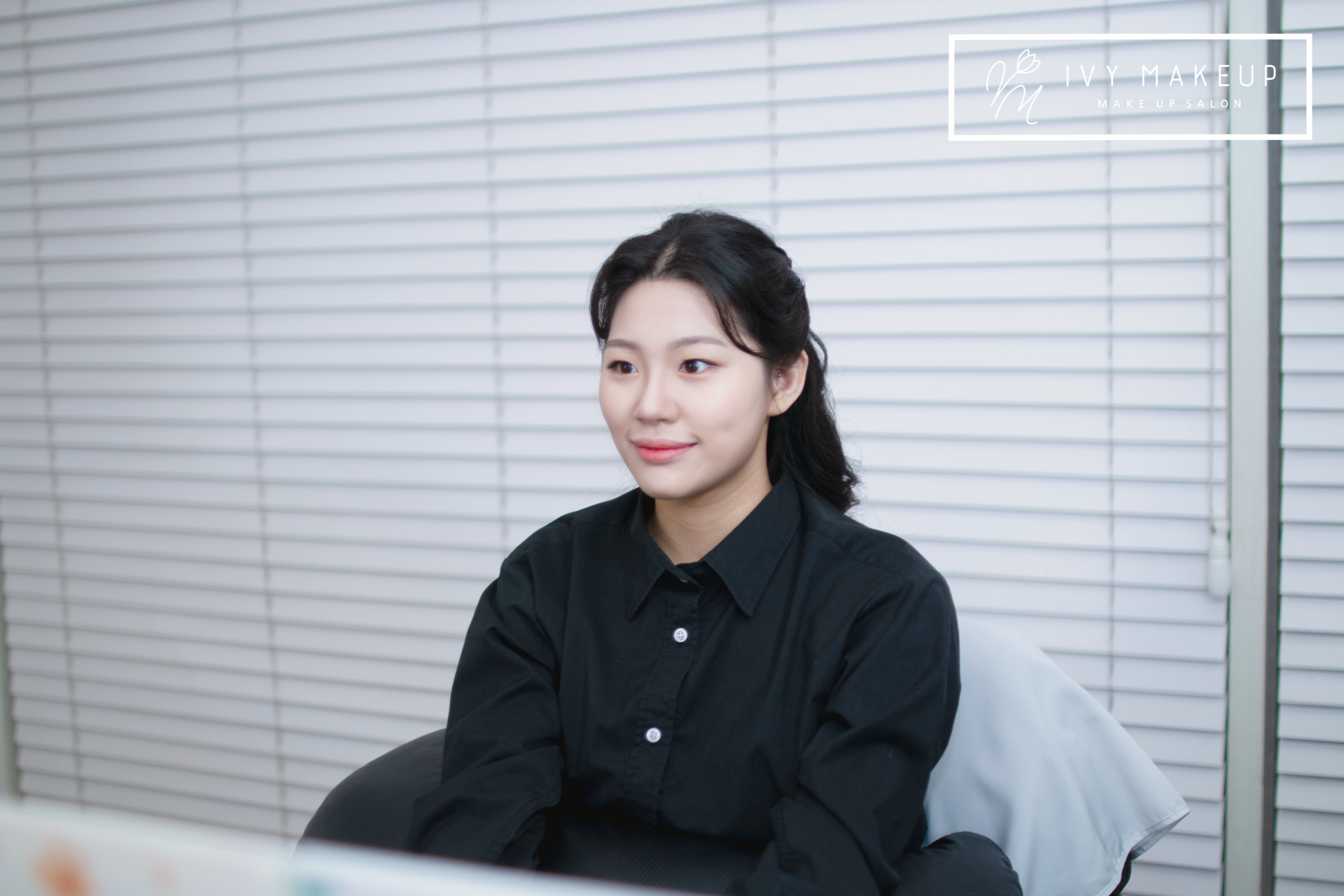 들어간 반머리 연출로 아이비 메이크업이
