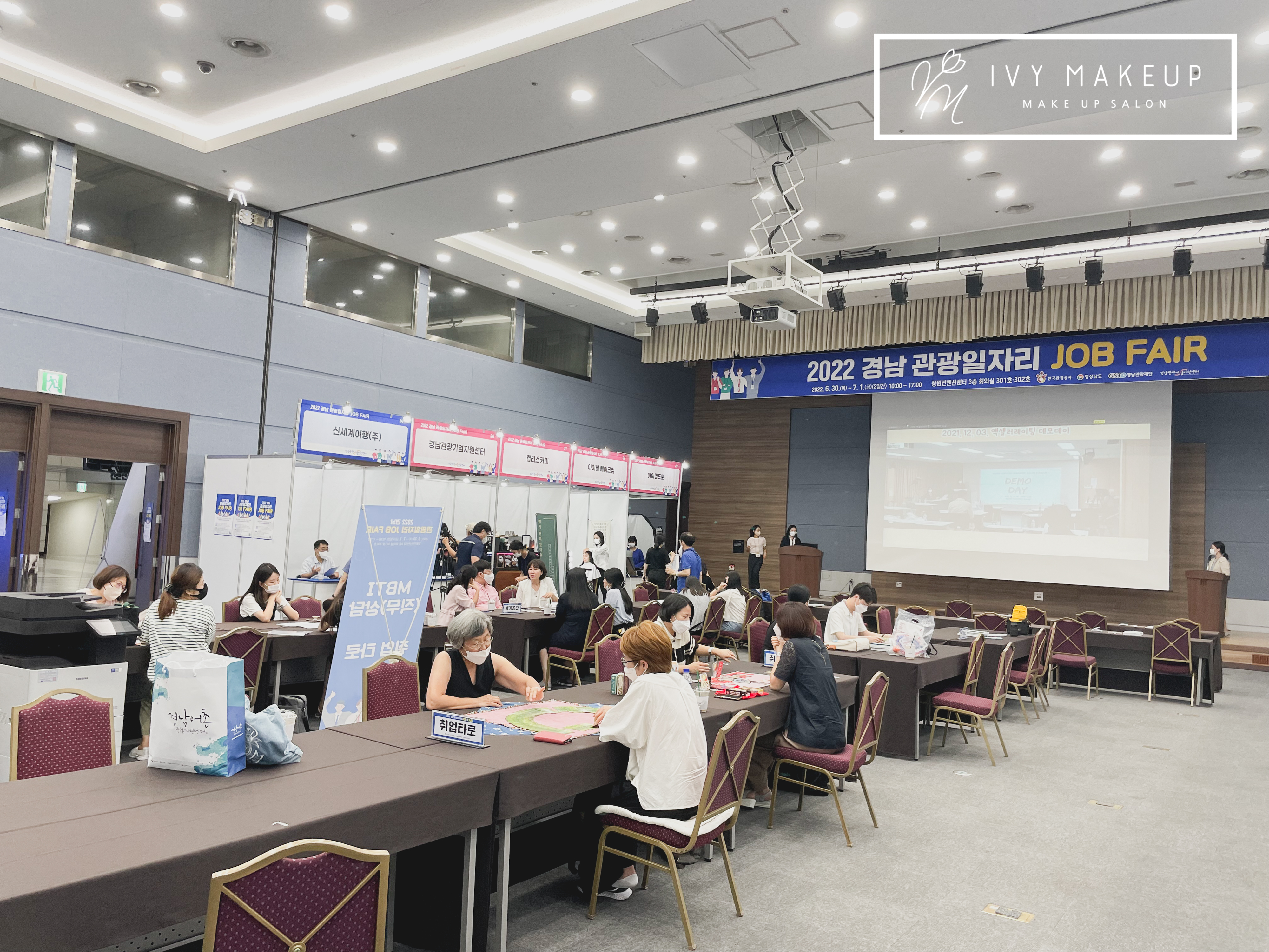창원 채용 박람회 메이크업과 헤어 신청자가 많아 사전 예약 후 스타일링을 아이비 메이크업이 진행되었습니다.