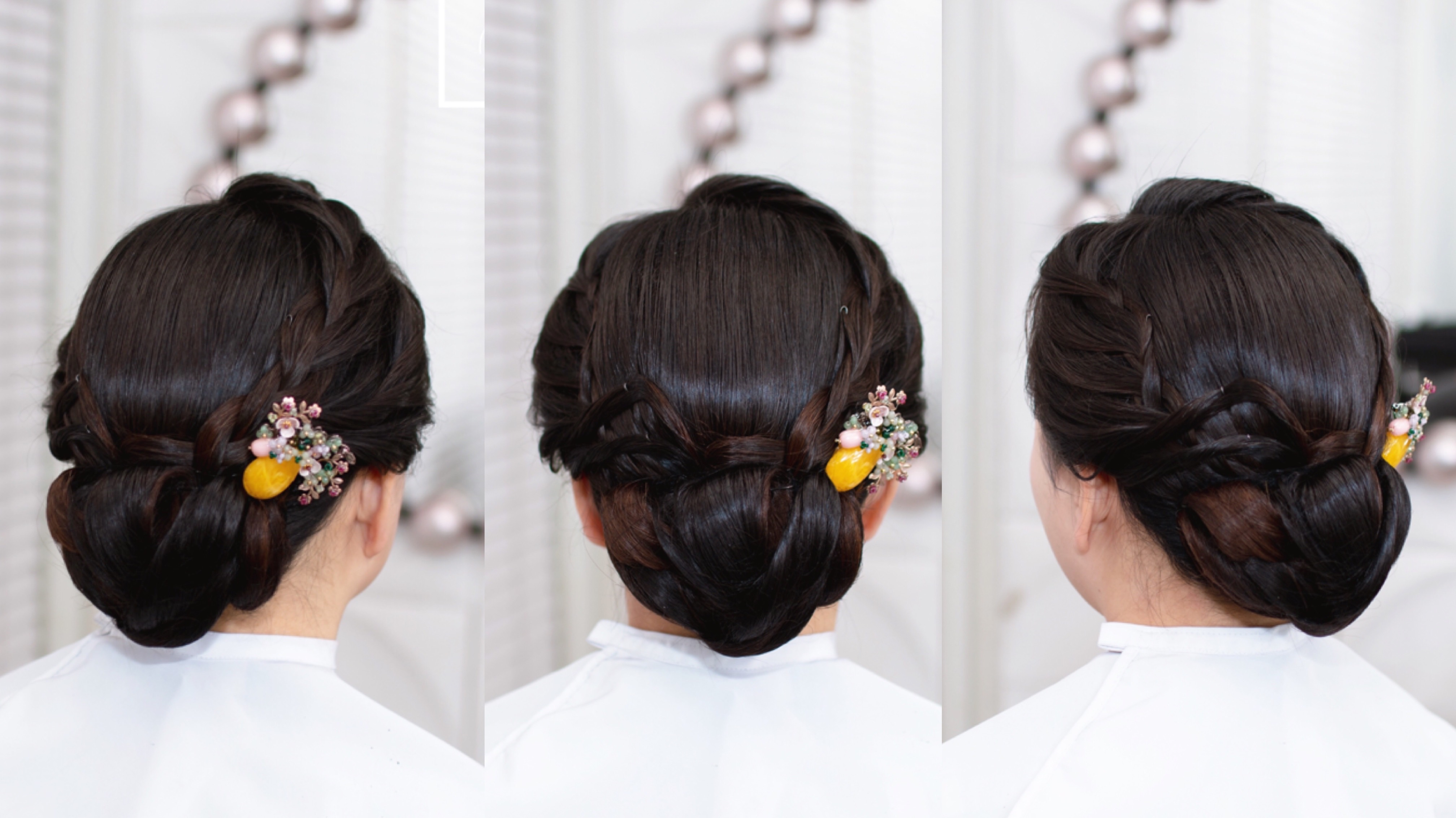 올림머리는 차분한 느낌으로