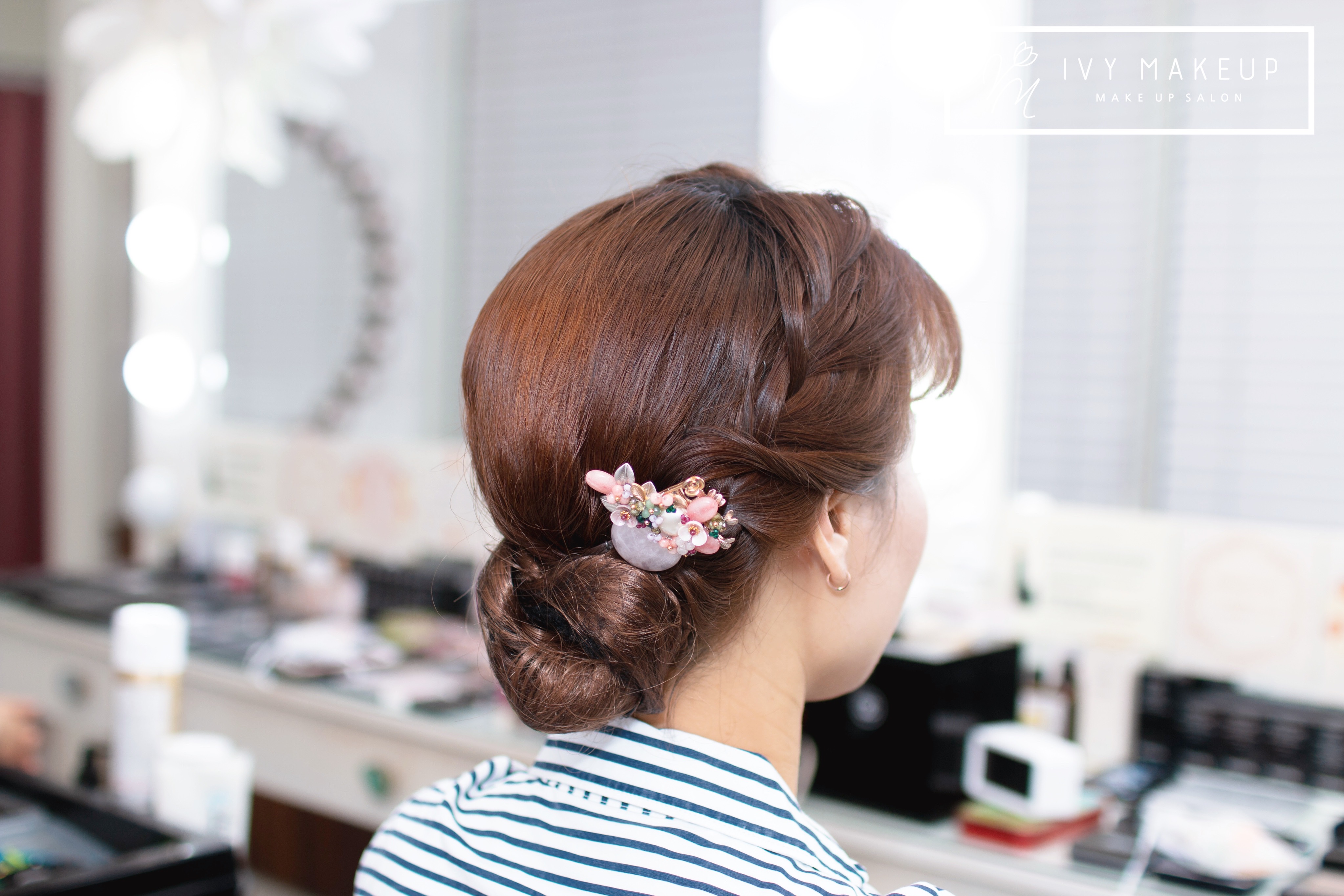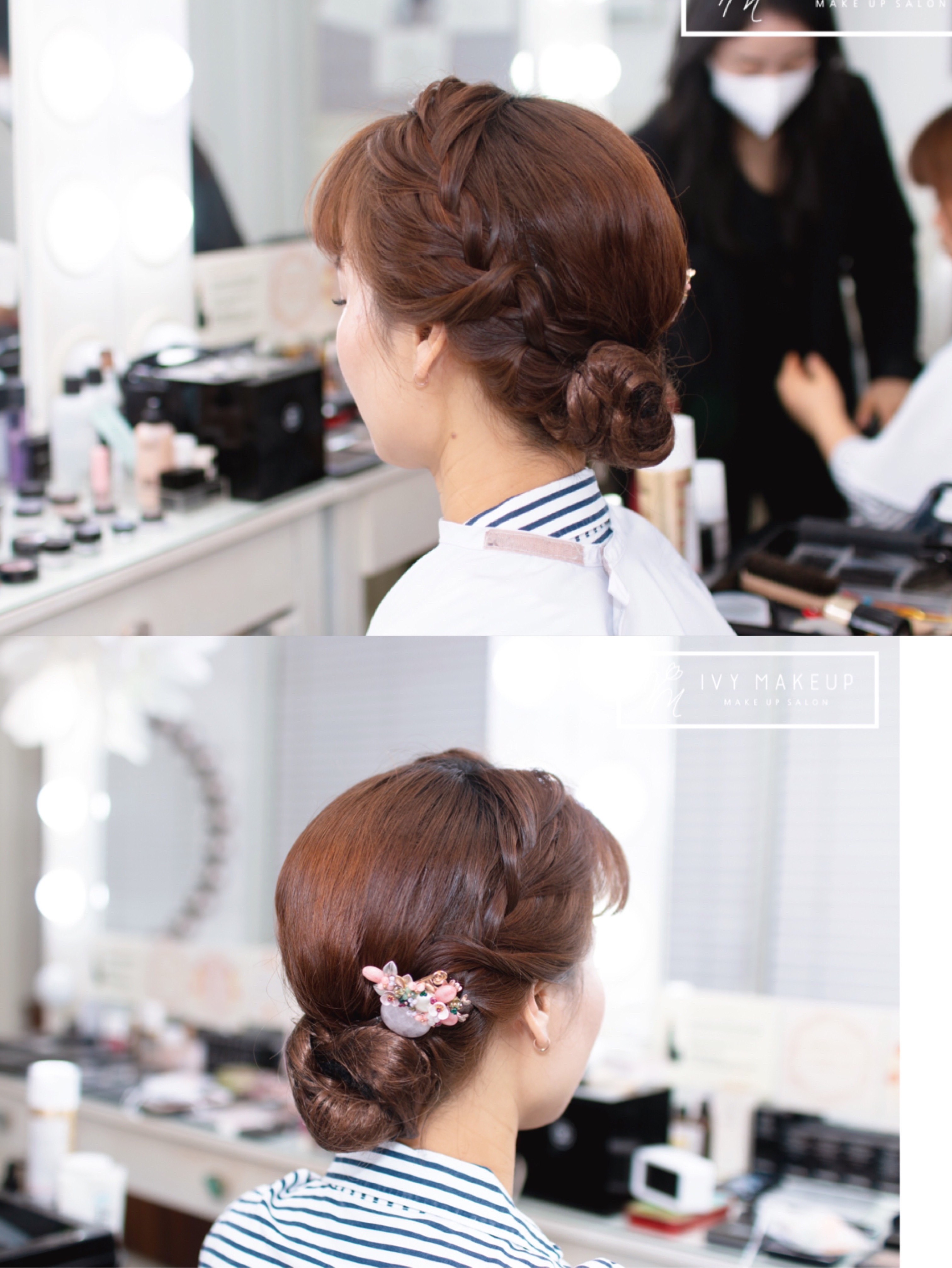 헤어 장식 코디로 아이비 메이크업이