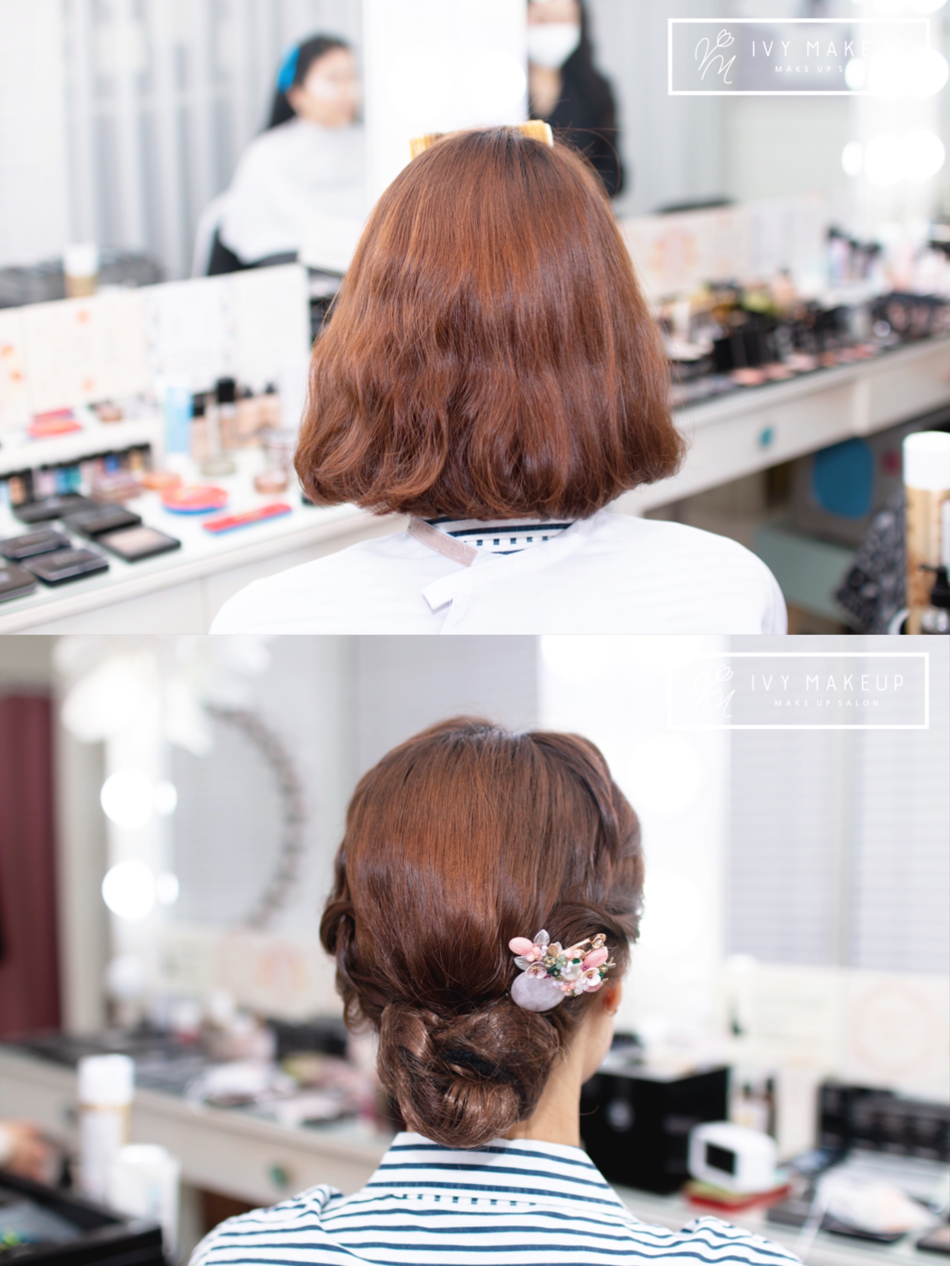 헤어 장식 코디로 아이비 메이크업이