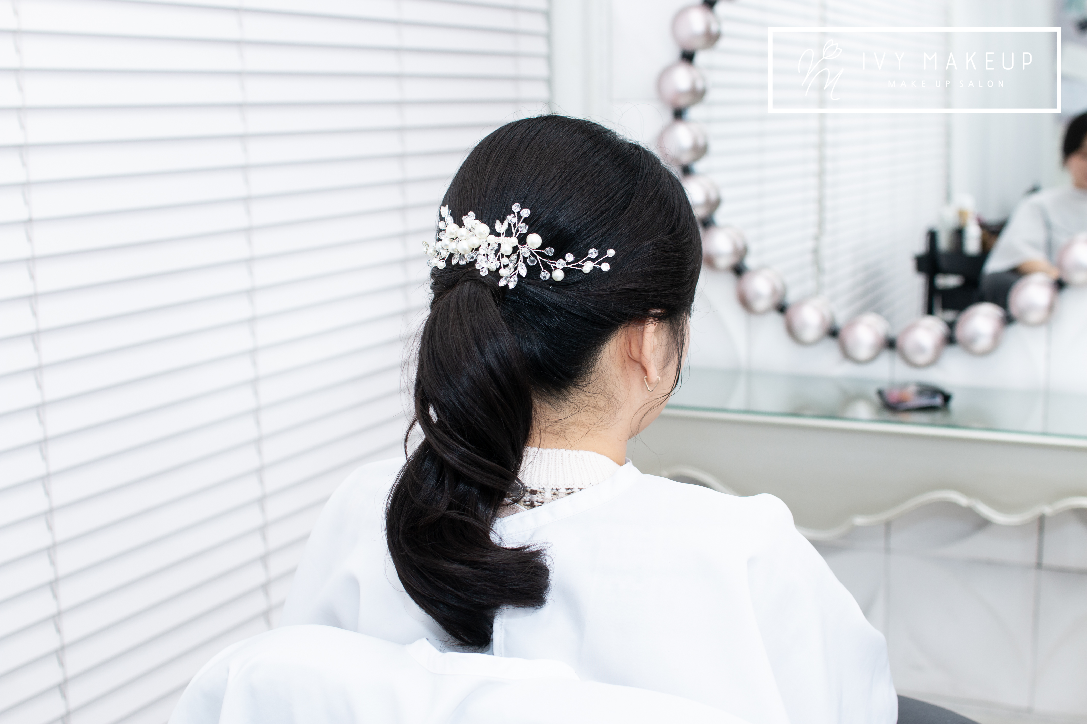 헤어 장식으로 마무리해 드렸어요.