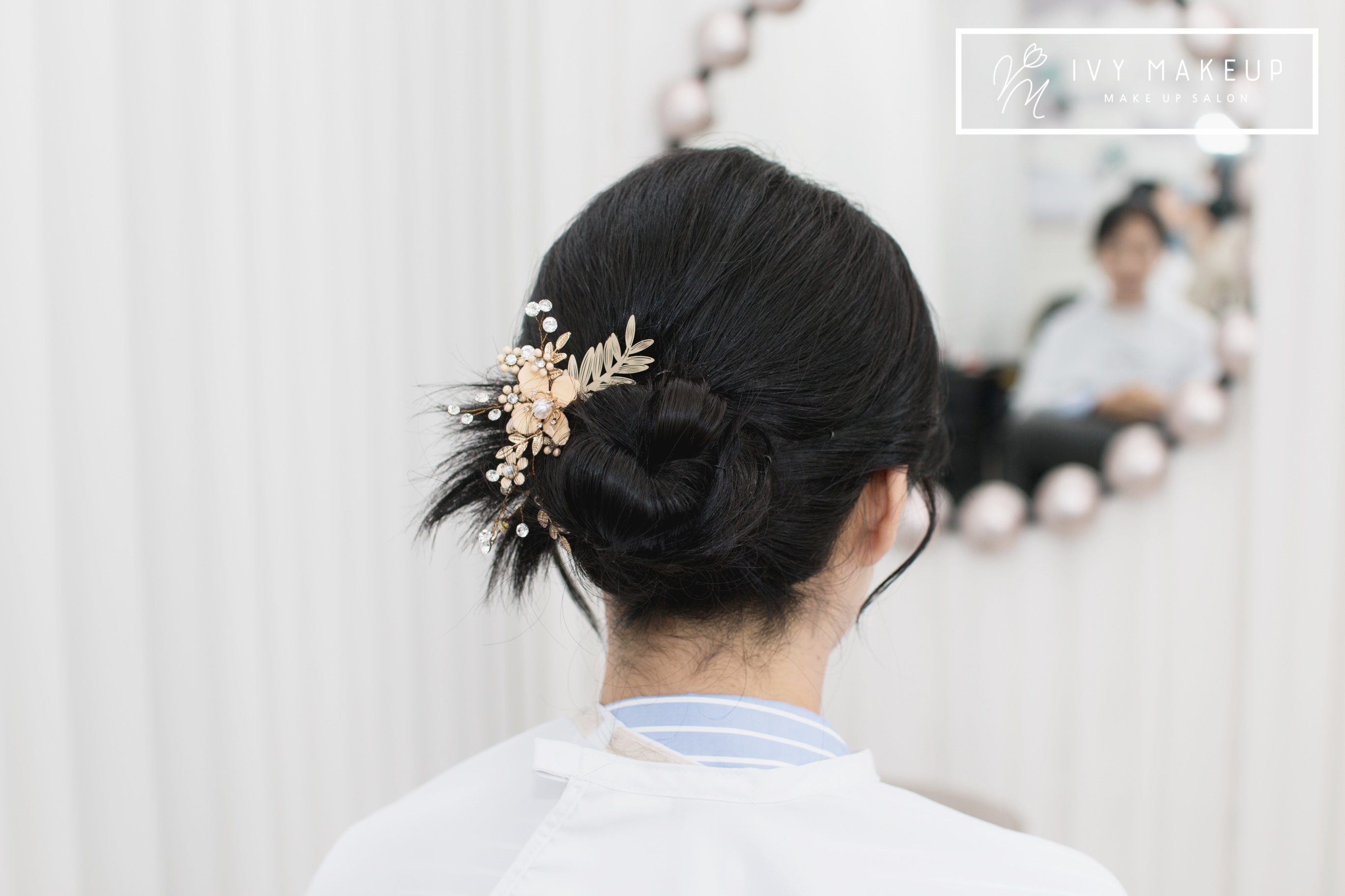 땋기 머리를 번 모양으로 아이비 메이크업이 틀어드렸어요
