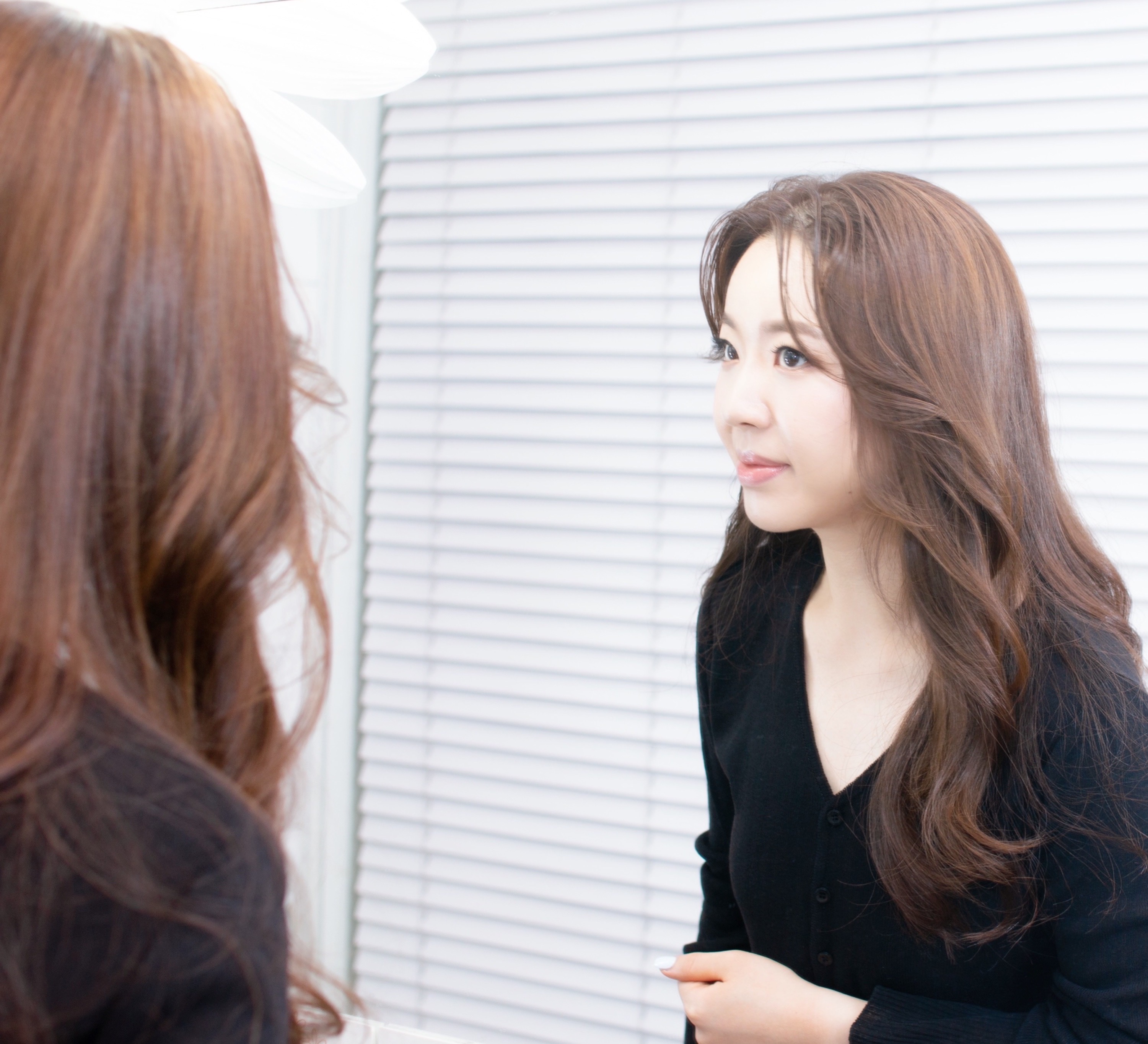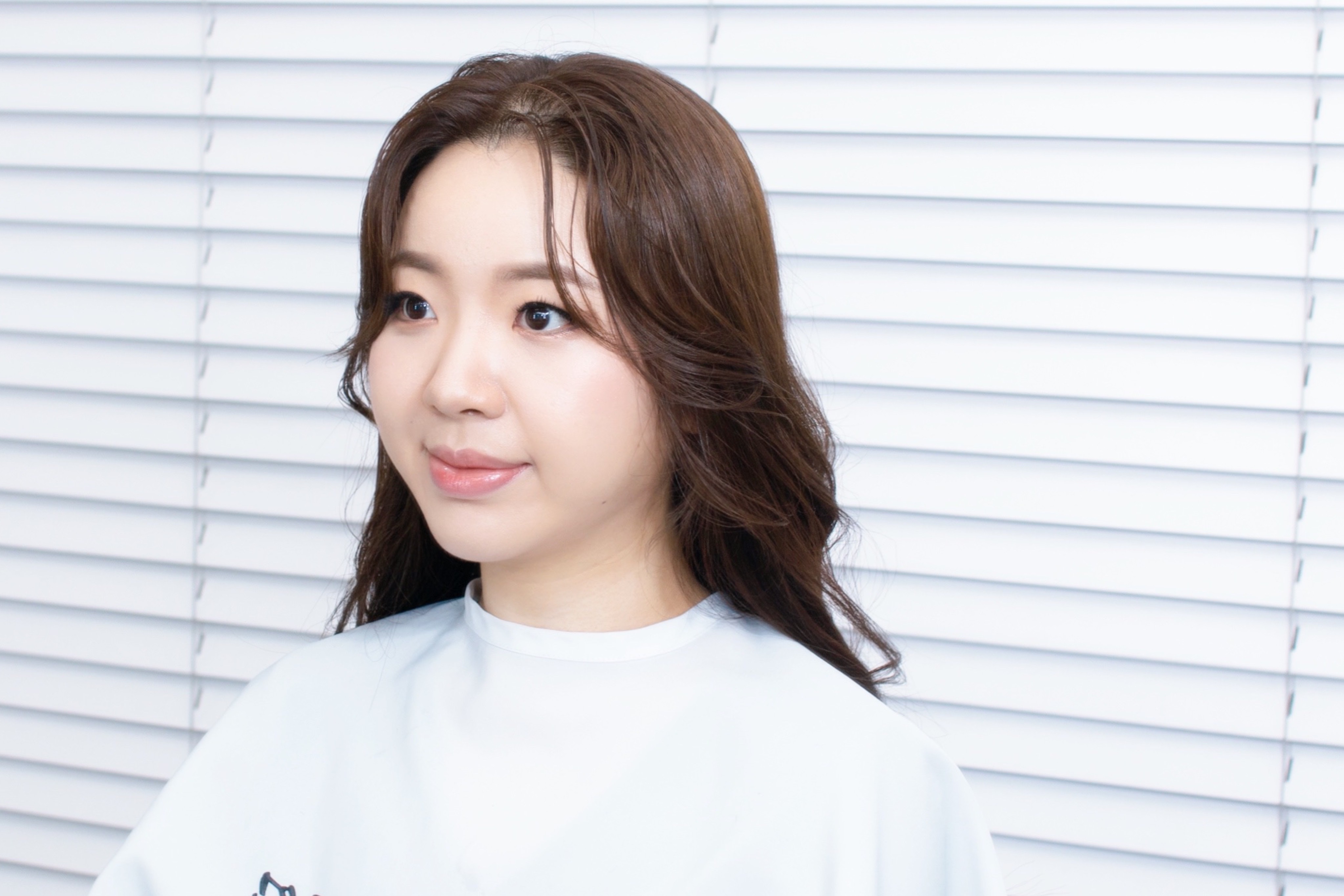 헤어스타일은 볼륨을 적당히 살려 얼굴도 작아 보이고