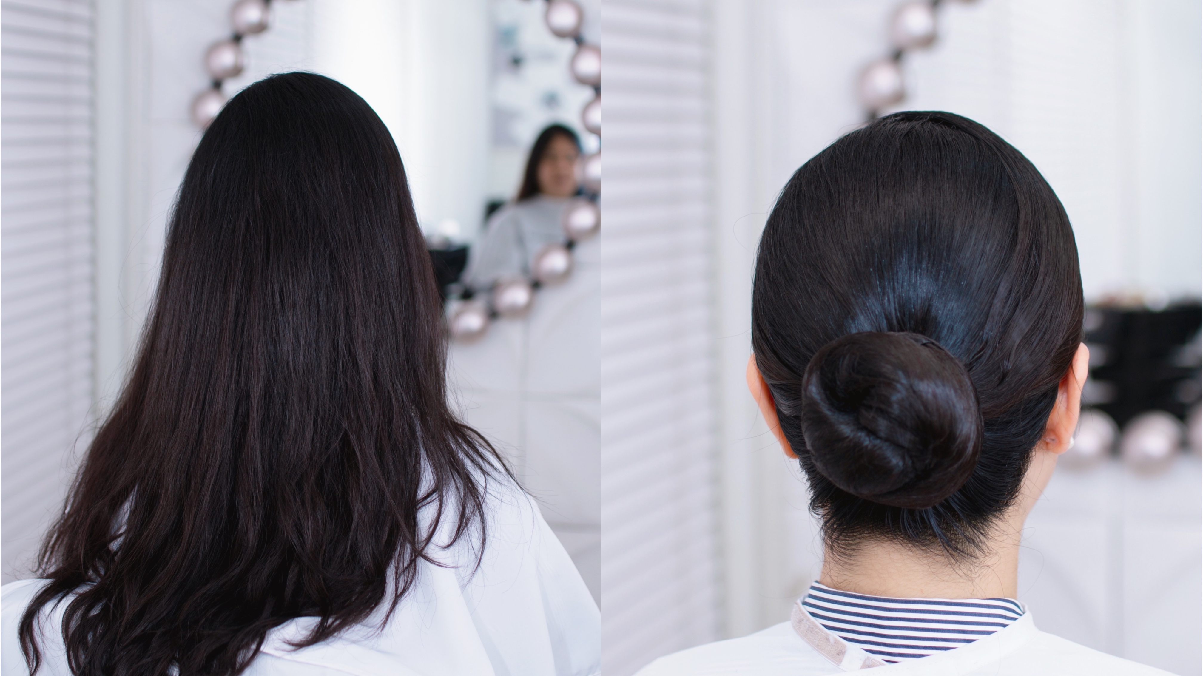 커트 드라이 연출, 쪽머리로 반듯하게