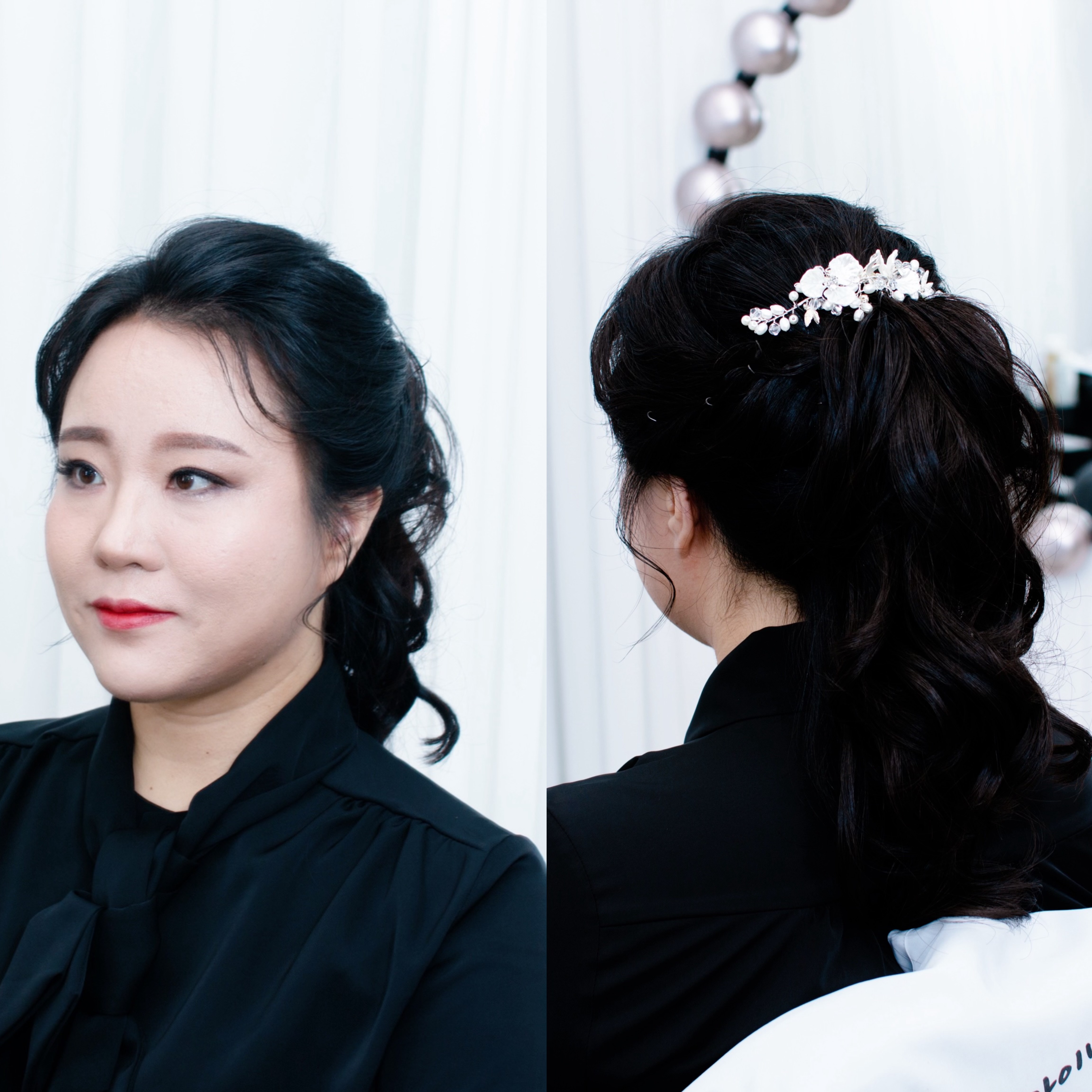 연주 시 보이는 방향에 헤어 액세서리로 포인트를 줬어요.