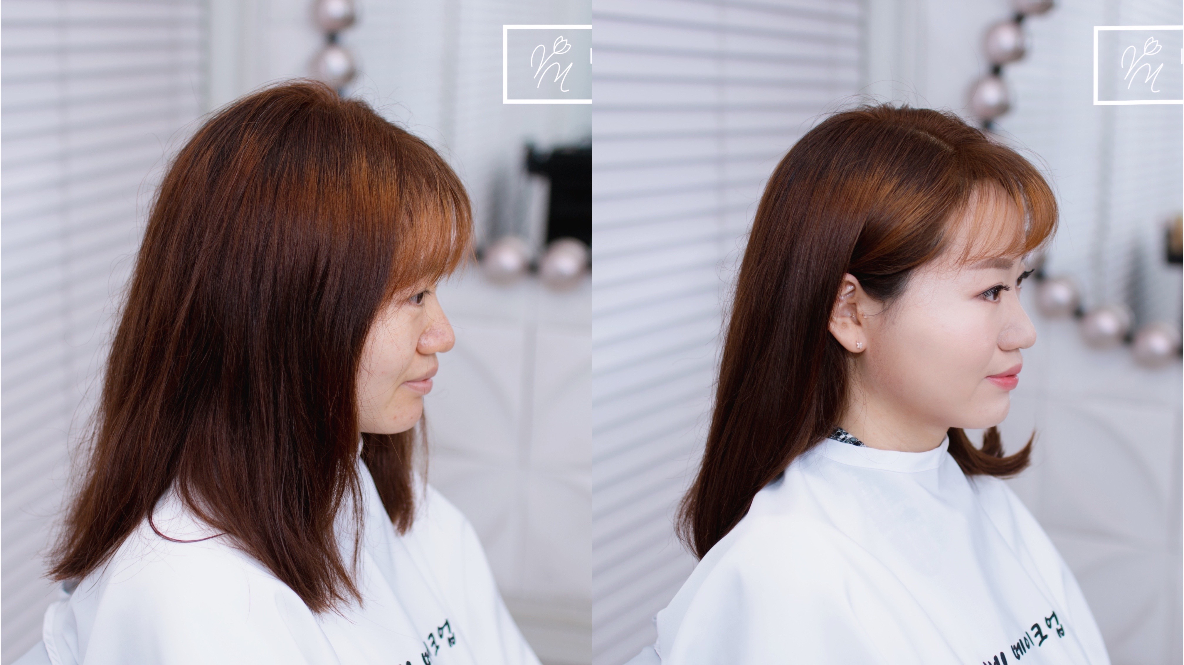 얼굴형을 보완한 헤어 볼륨과 사랑스러운