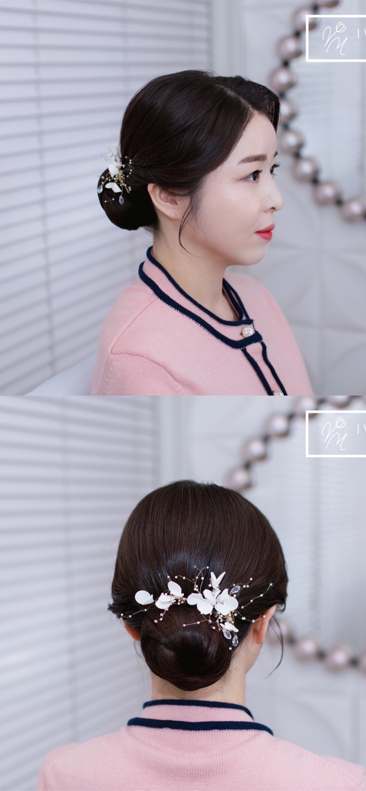 낮게 묶어 내려올수록 우아하고 단아한 느낌,
