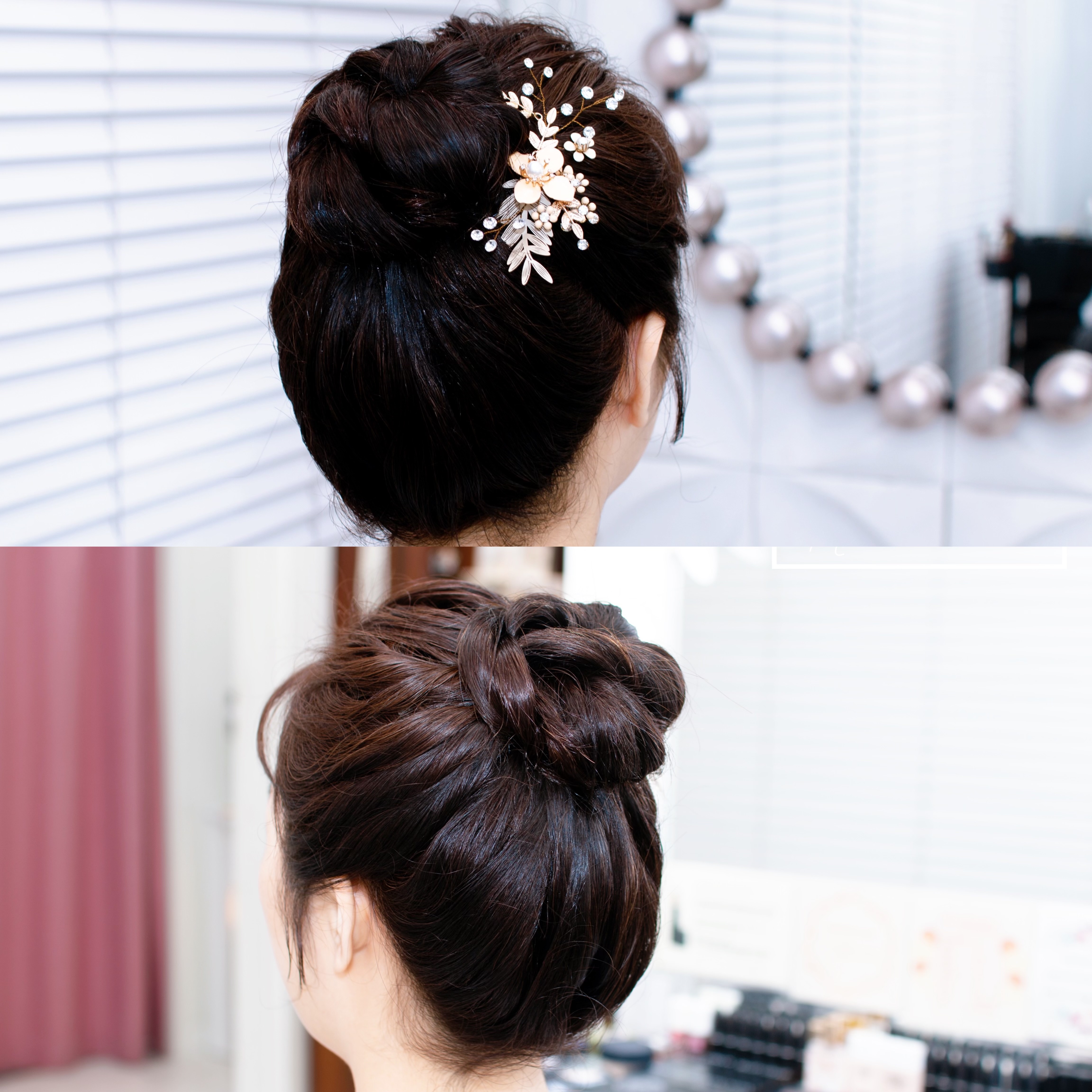 풍성한 올림머리가 연출되죠.