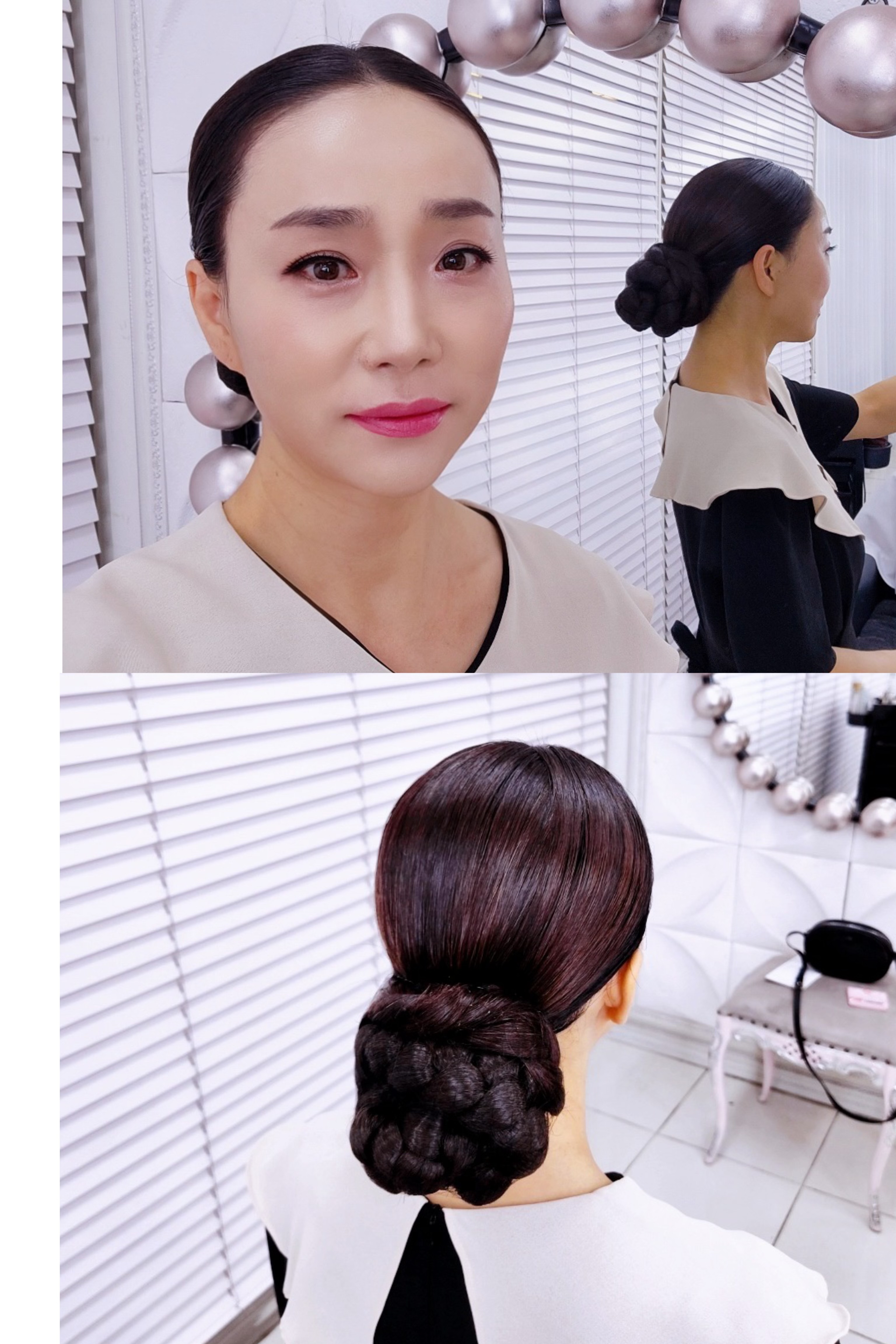 낮게 묶어 연출할수록 우아하고 단아한 느낌으로