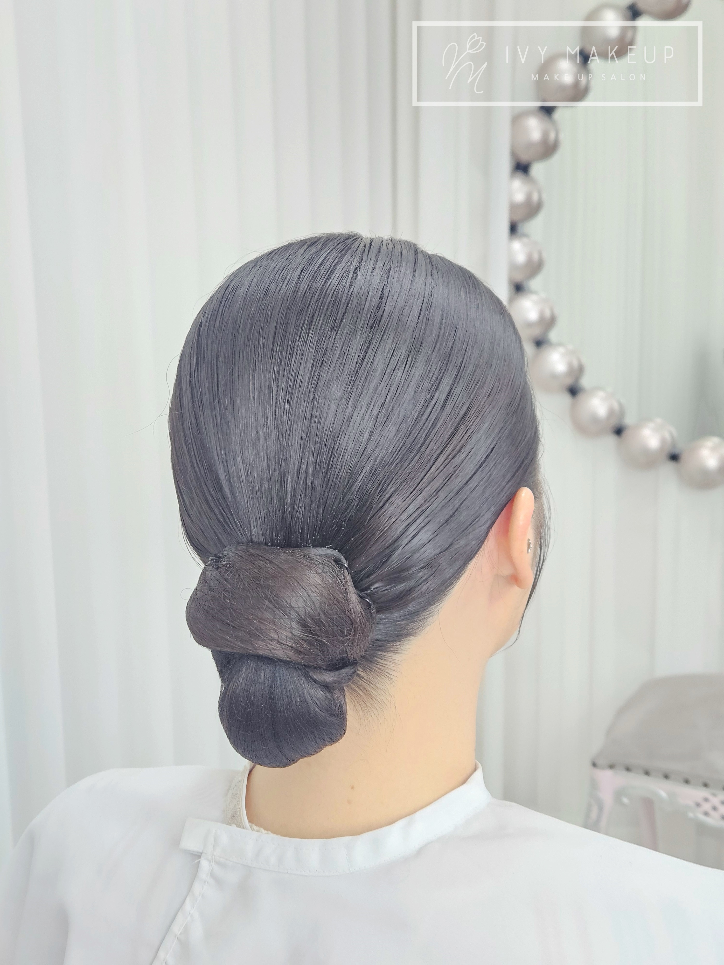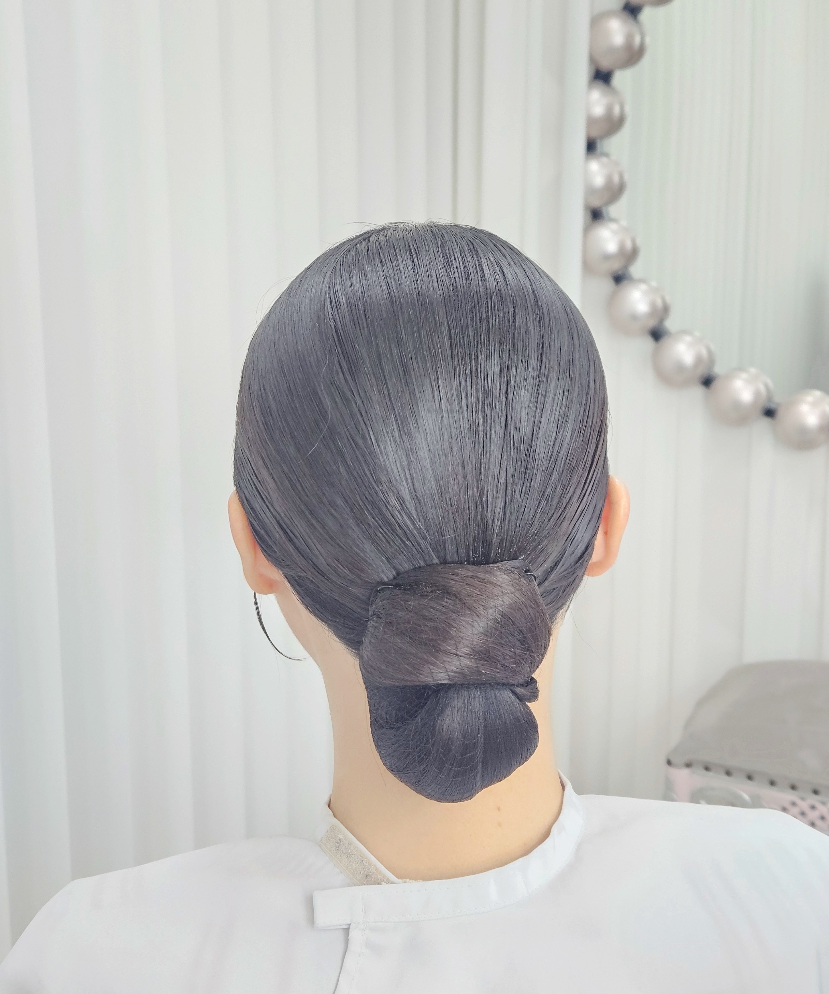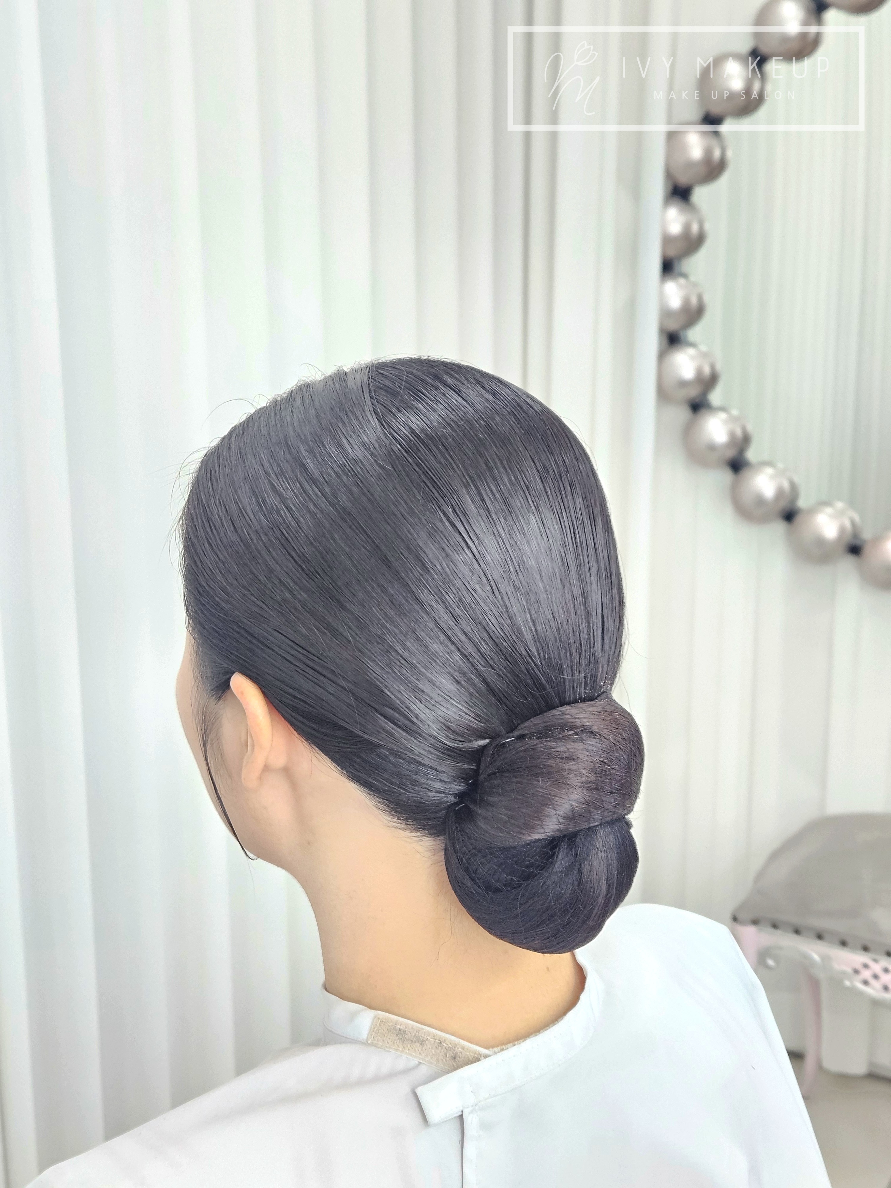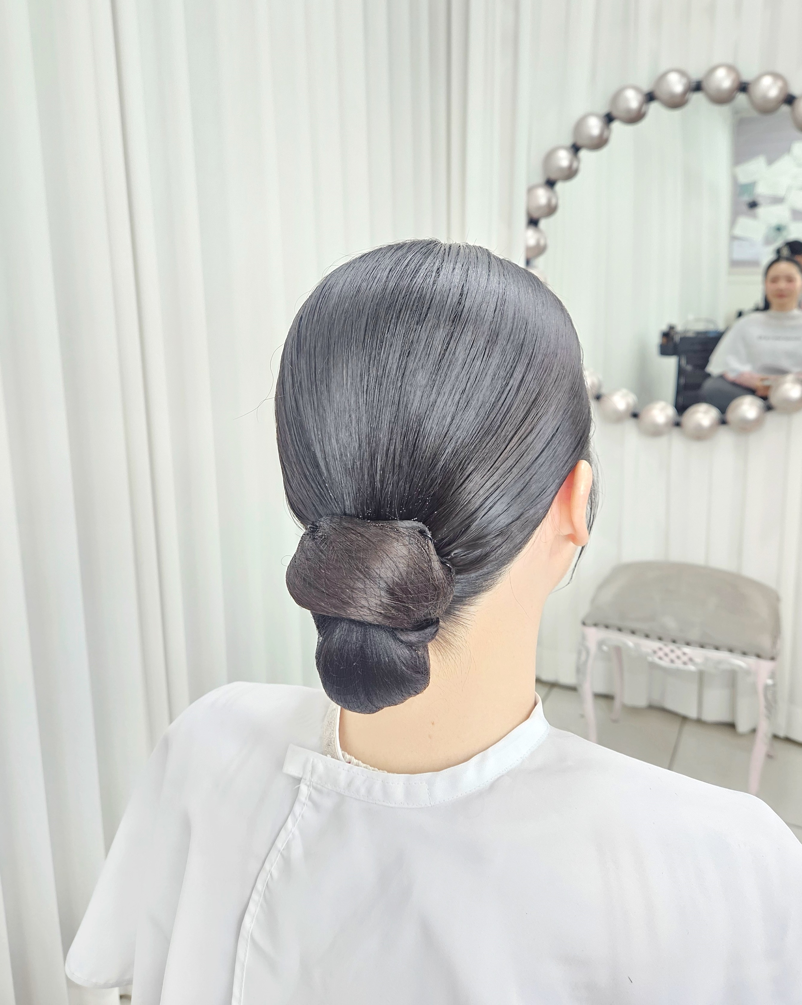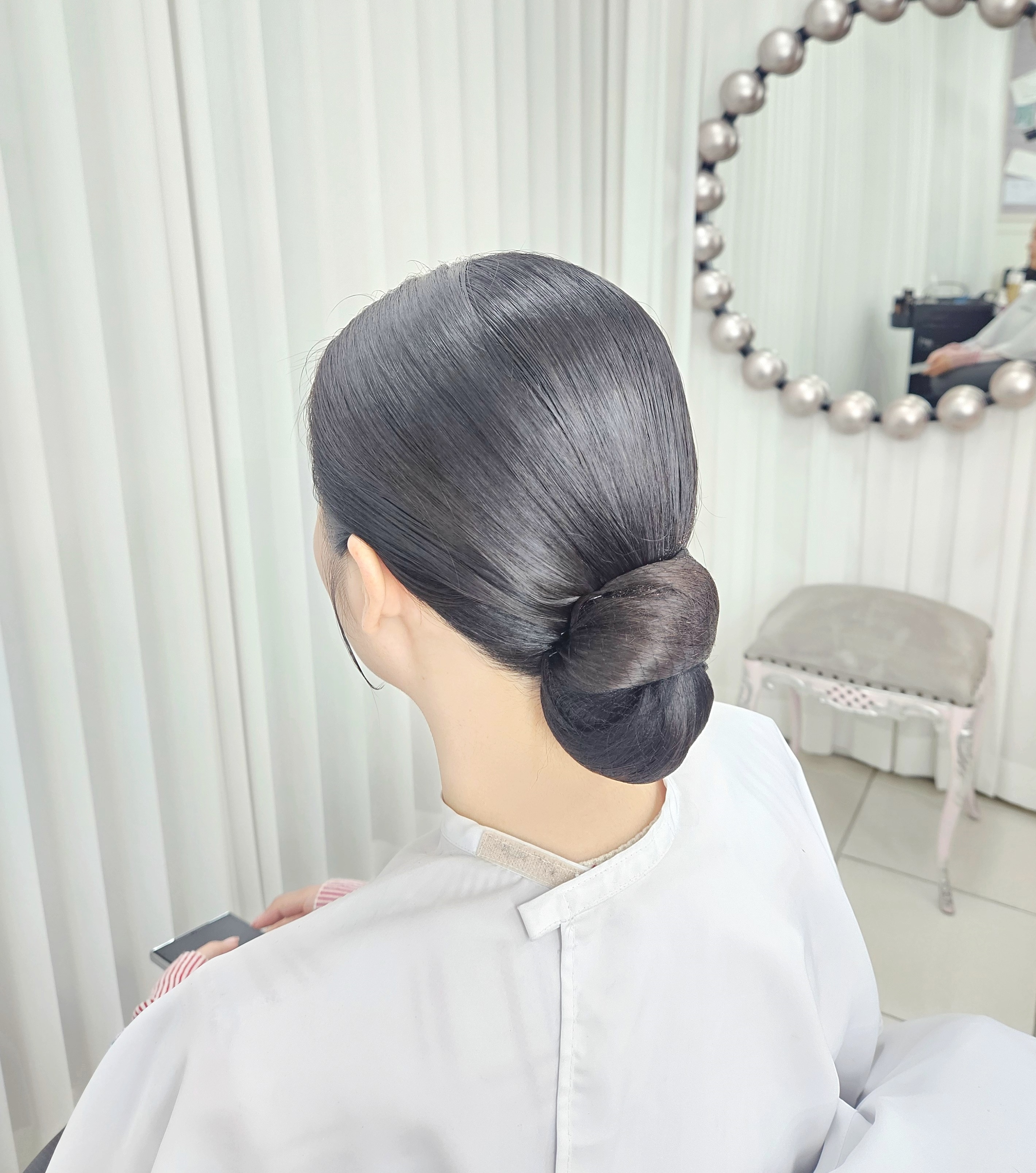 정갈한 가르마와 볼륨, 쪽머리는 자칫 얼굴이 커